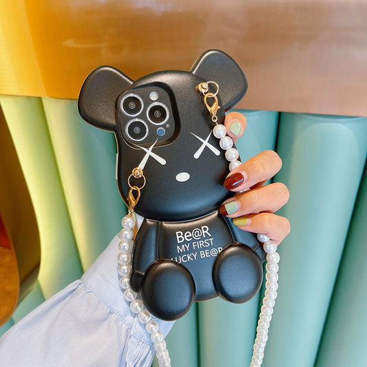 スマホケース H5「ベア」パールストラップ付き ブラック
