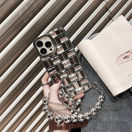 スマホケース H5「insメッキ 」クリスタルダブルストラップ付き シルバー