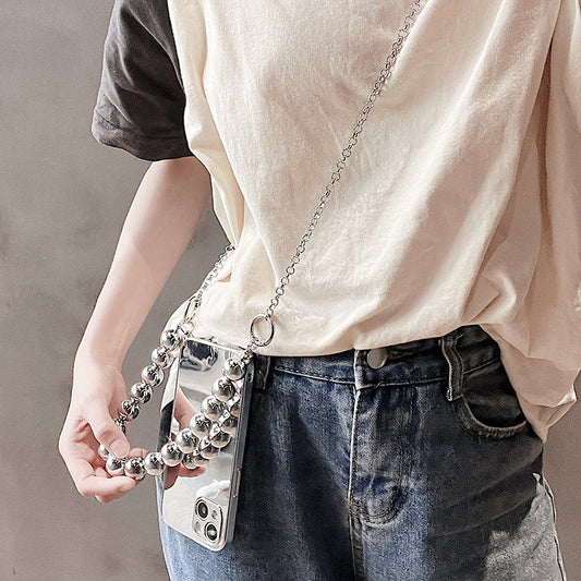 スマホケース H5「ミラー」メタルダブルストラップ付き シルバー