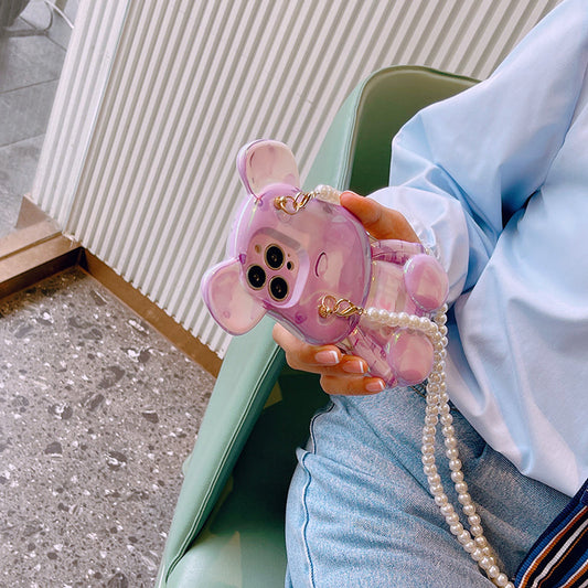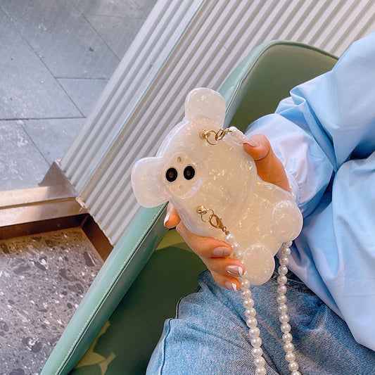 スマホケース H5「真珠層ベア」パールストラップ付き ホワイト