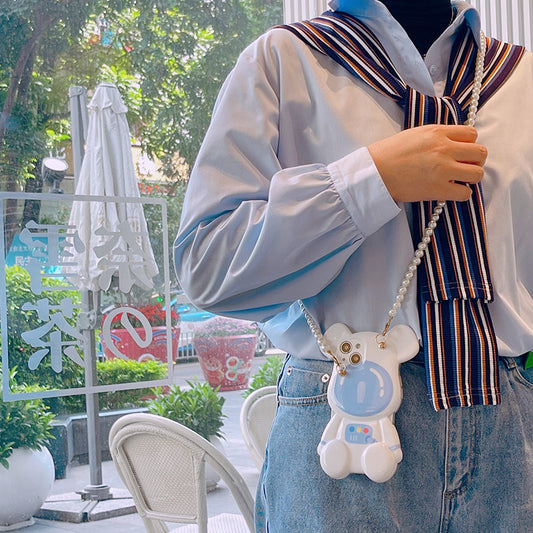 スマホケース H5「スペースベア」パールストラップ付き ブルー/ピンク