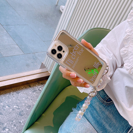 スマホケース H5「CHEERミラー」クリアパールリストストラップ付き クリア