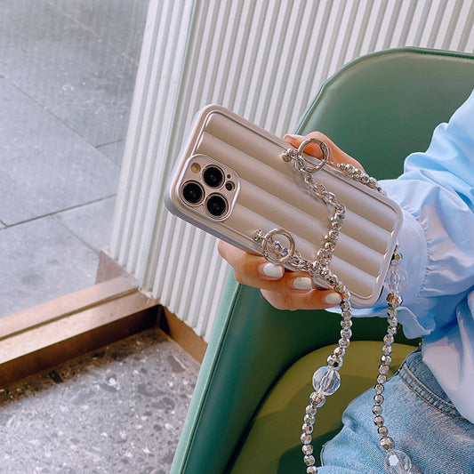 スマホケース H5「半円ロングメッキ 」クリスタルダブルストラップ付き シルバー