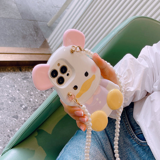 スマホケース H5 「ダックベア」パールストラップ付き ホワイト