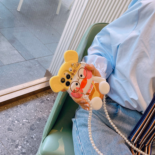 スマホケース H5「頑張ってダックベア」パールストラップ付き イエロー