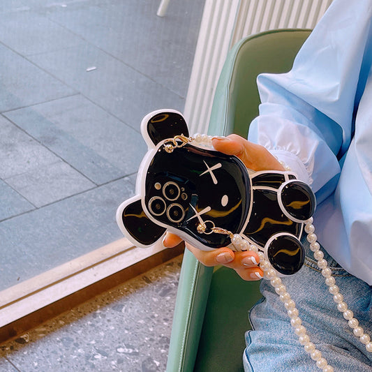 スマホケース H5「光沢ベア」パールストラップ付き ブラック