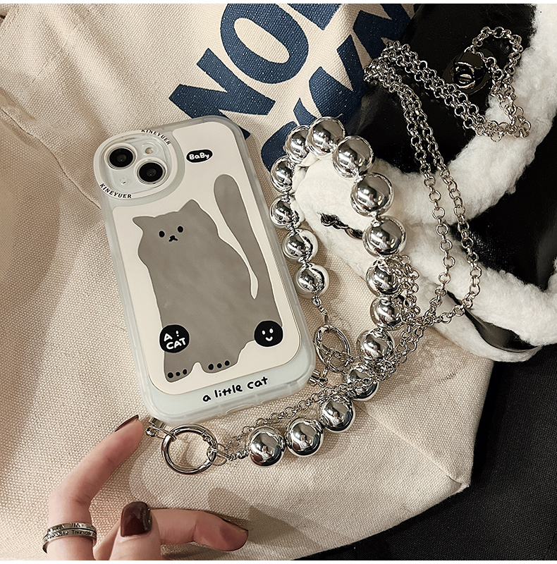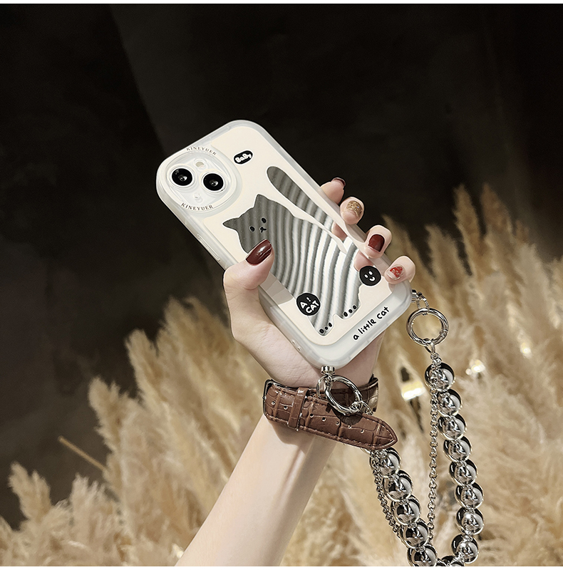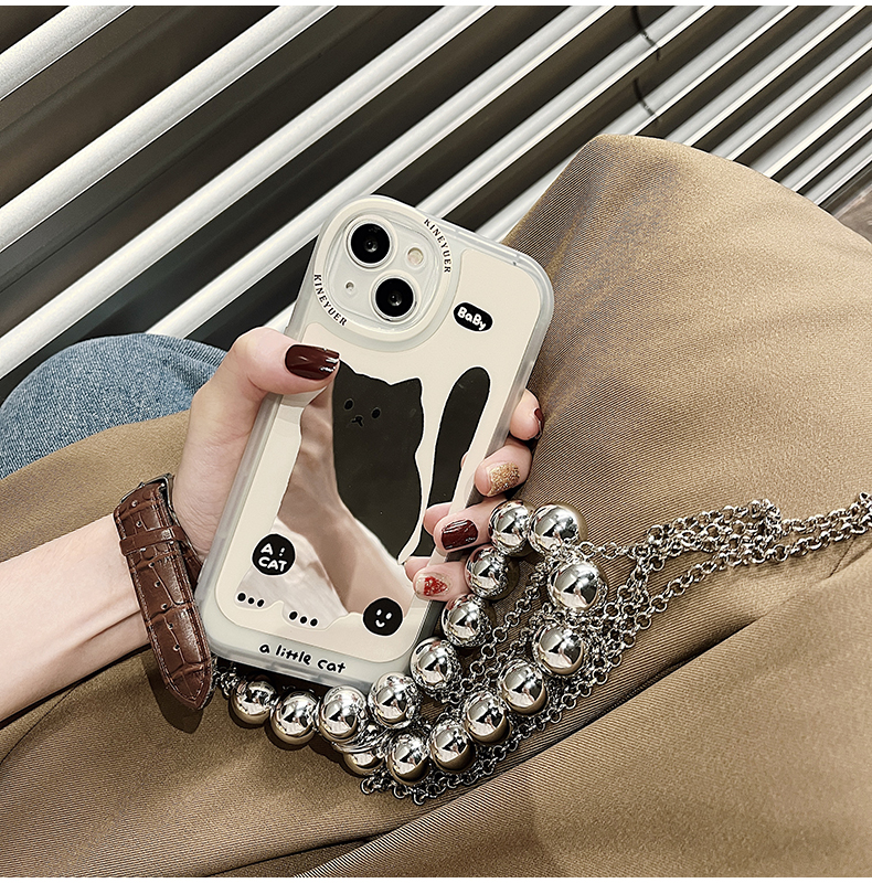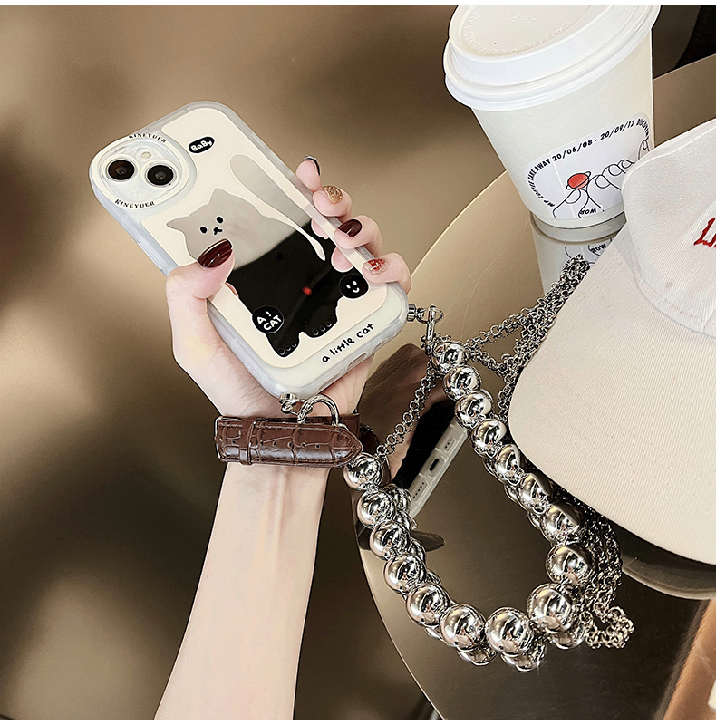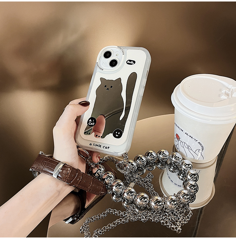 スマホケース H5「ねこミラー」メタルダブルストラップ付き ホワイト