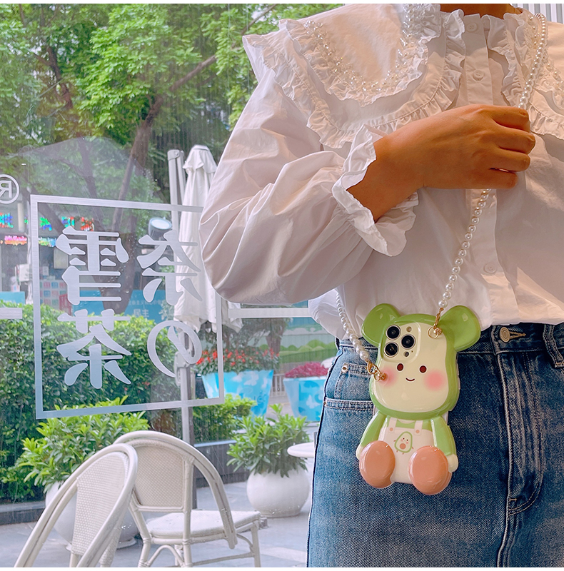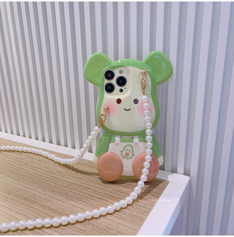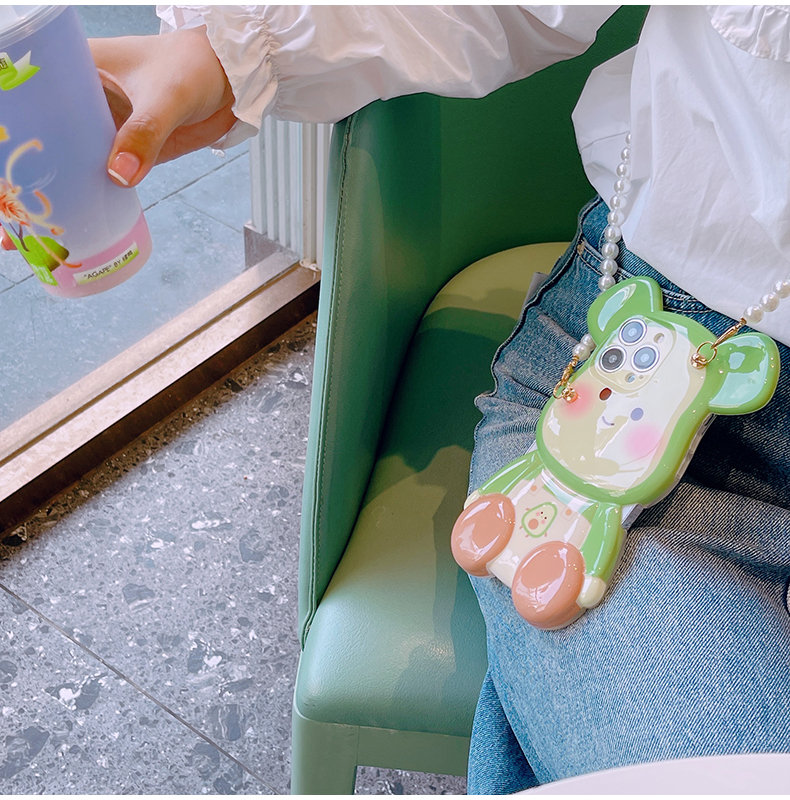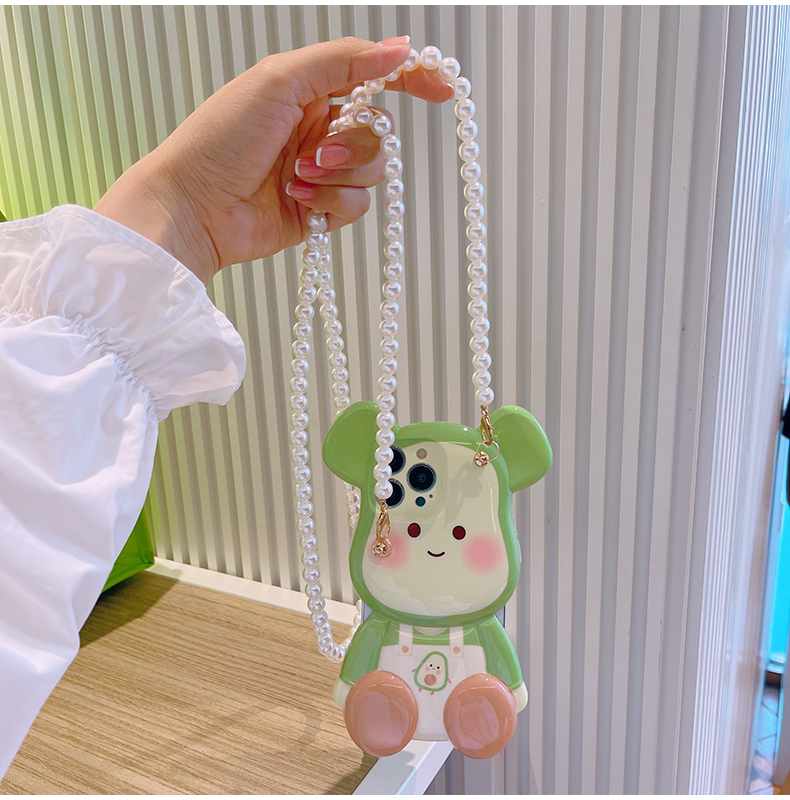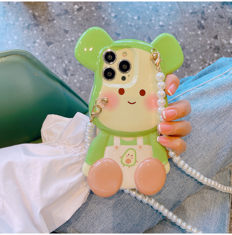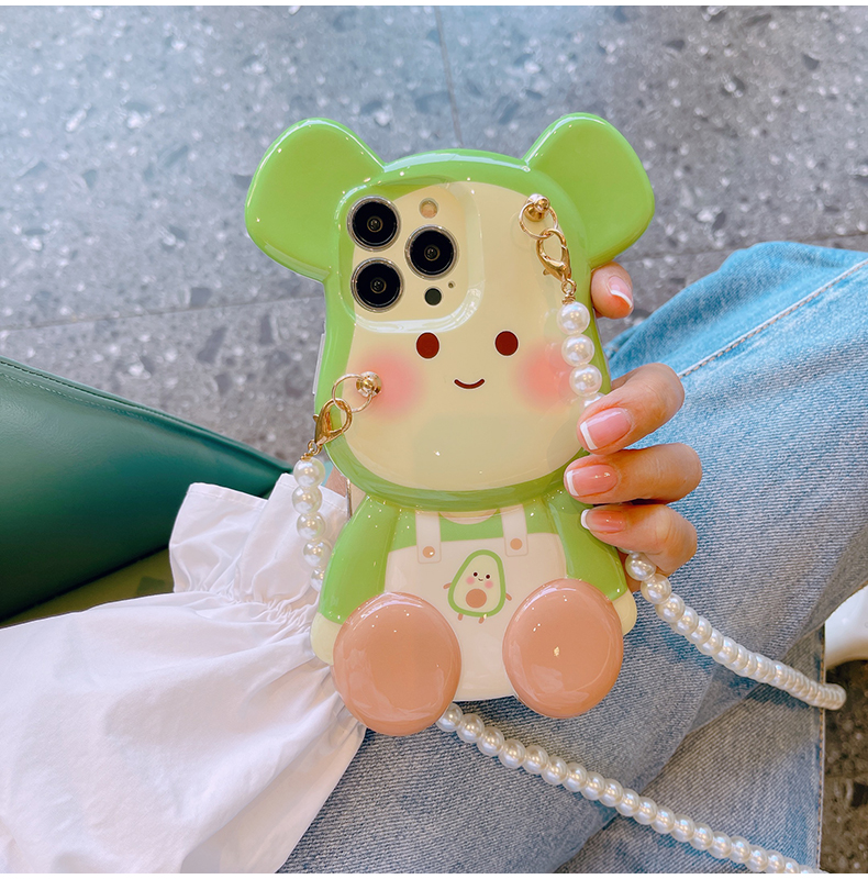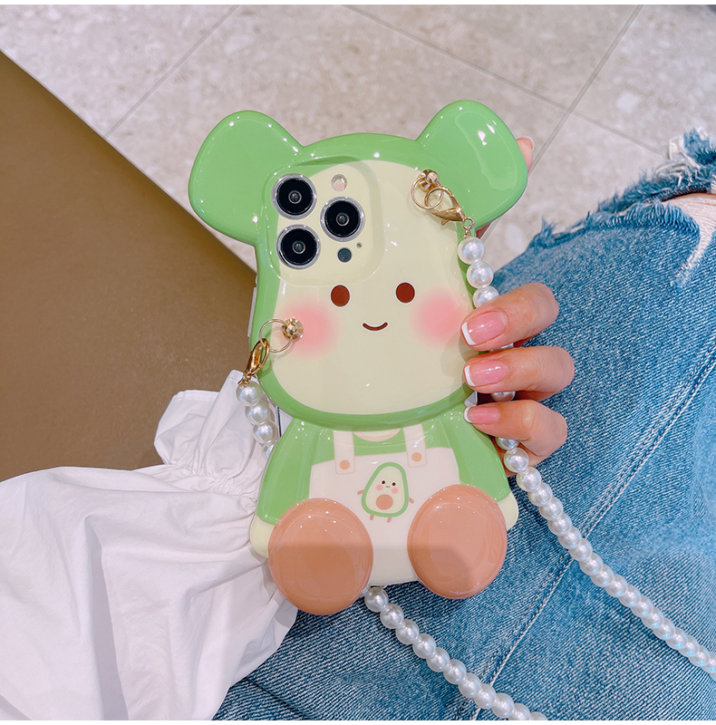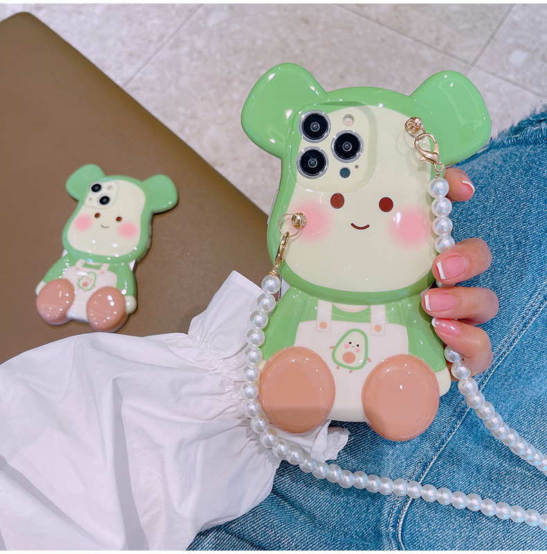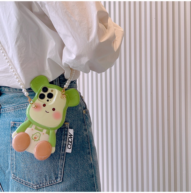 スマホケース H5 「アボカドベア」パールストラップ付き グリーン