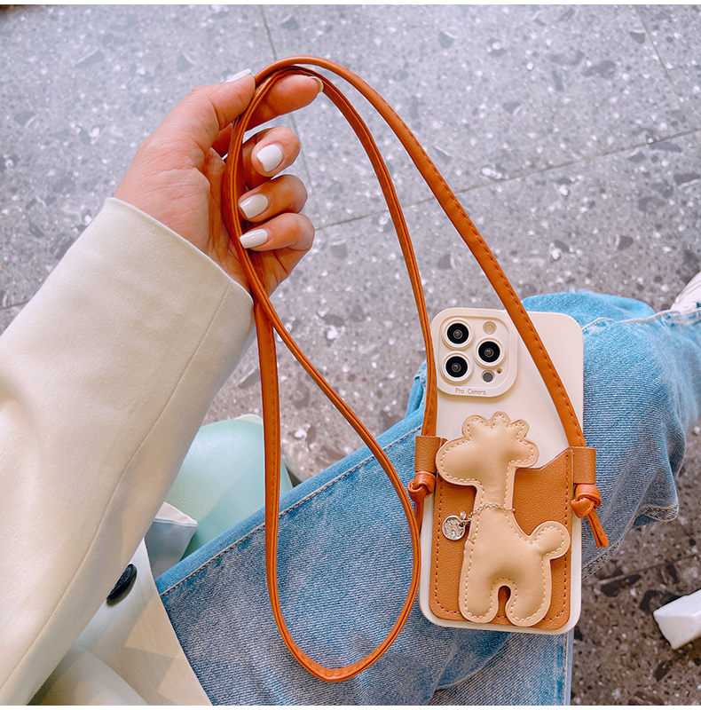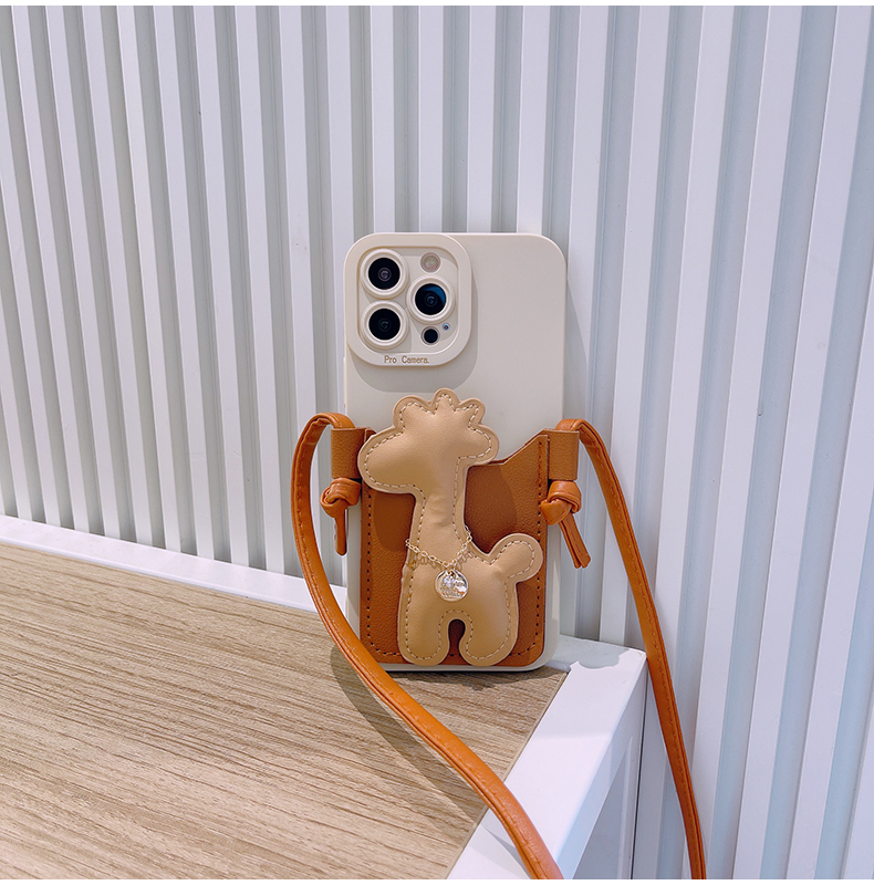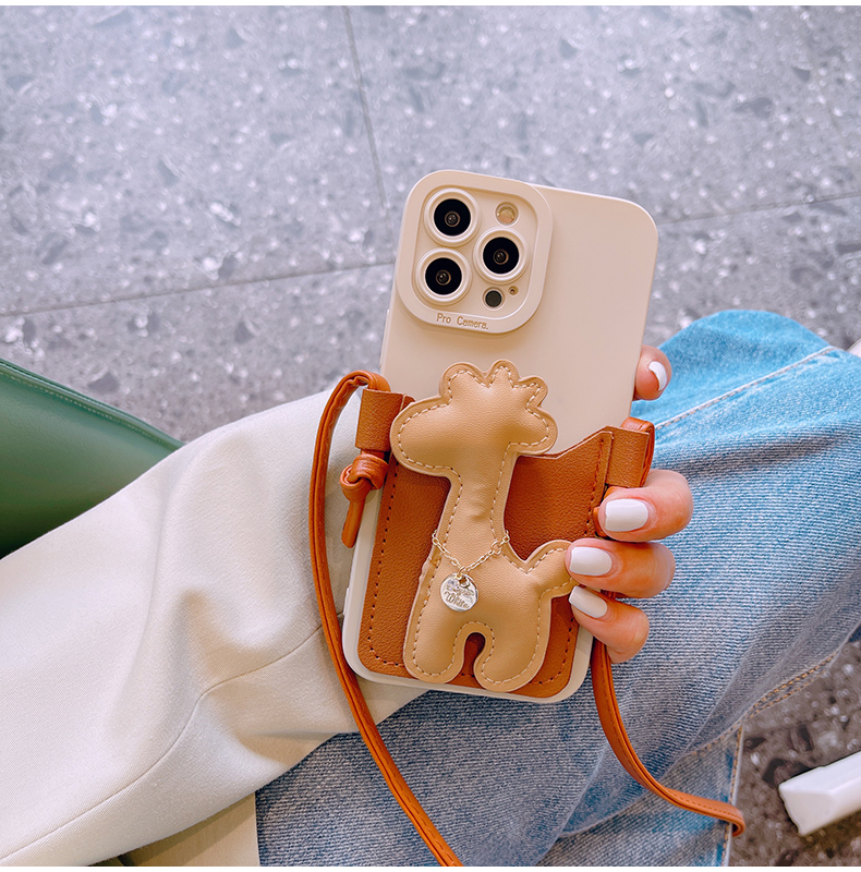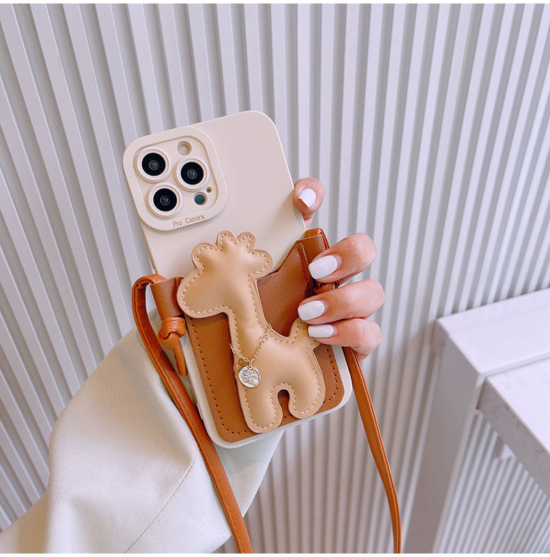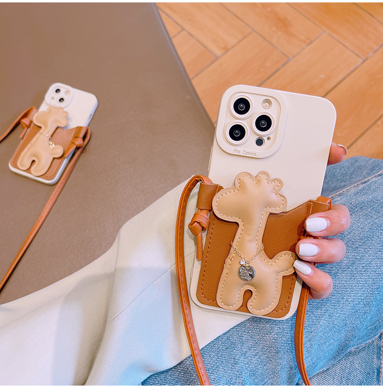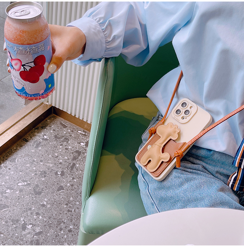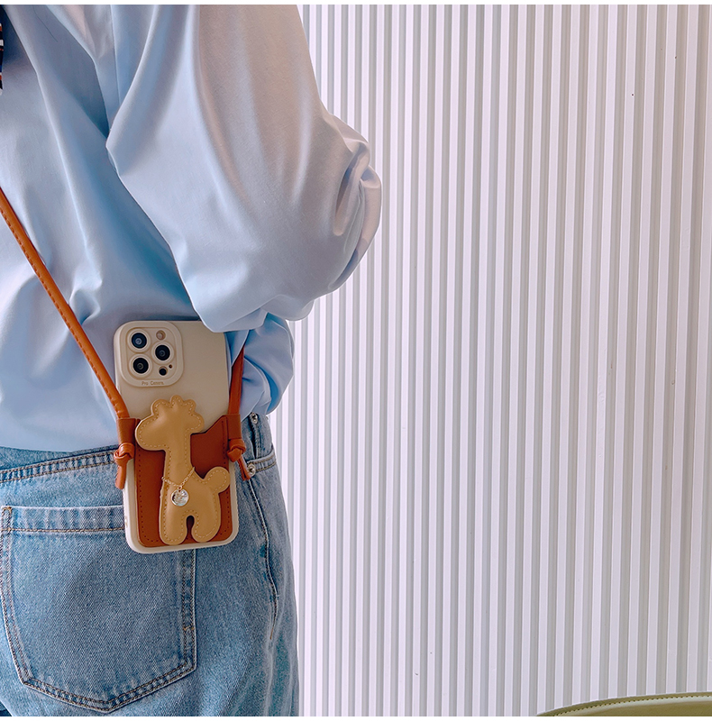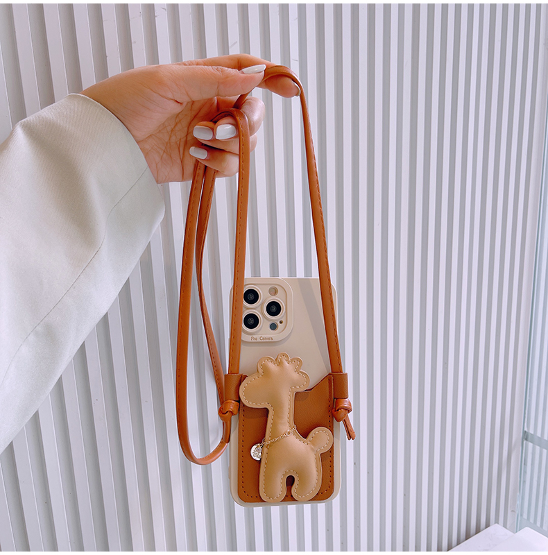 スマホケース H5「キリン」カードホルダー レザーストラップ付き ブラウン