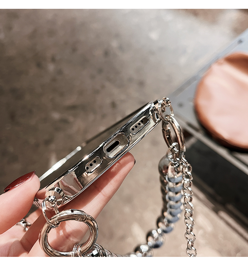 スマホケース H5「insメッキ 」クリスタルダブルストラップ付き シルバー