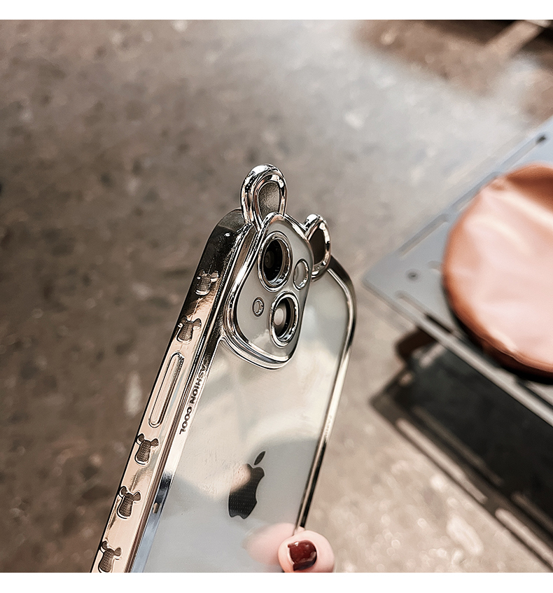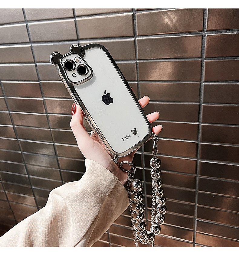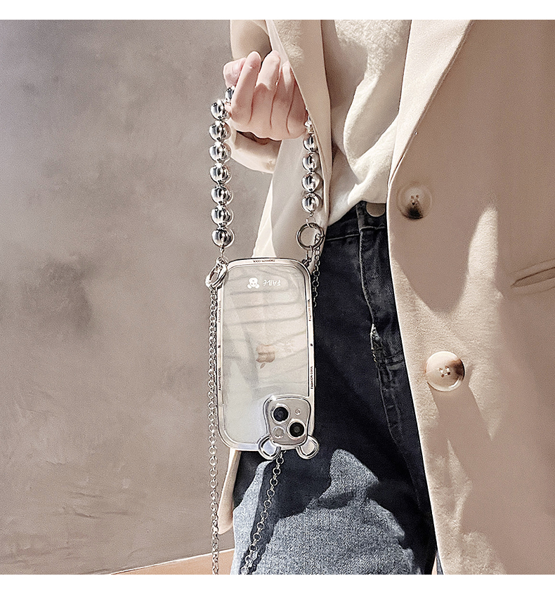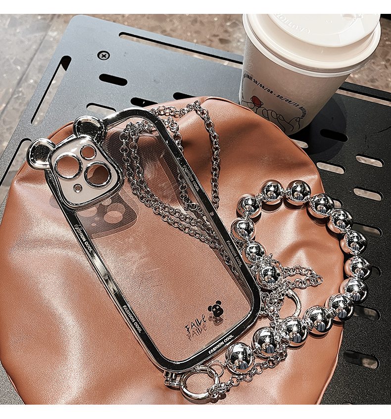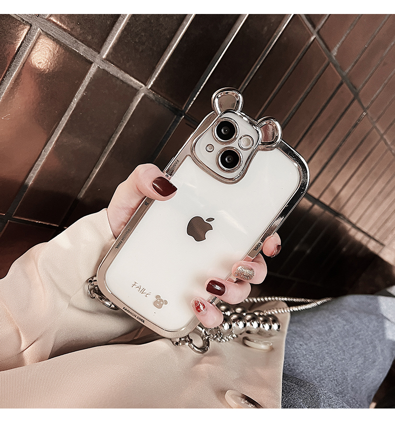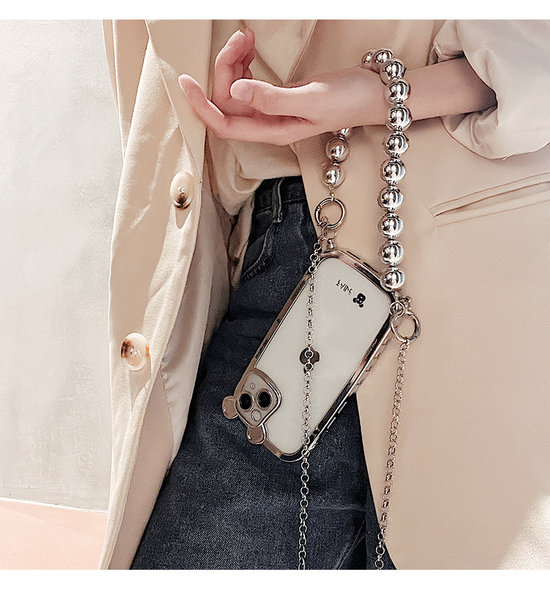 スマホケース H5「クリアベア」メタルダブルストラップ付き シルバー