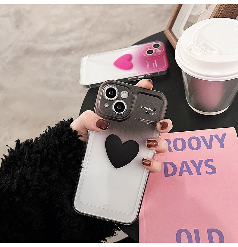 スマホケース H5「グラデーションハート」ブラック/ピンク