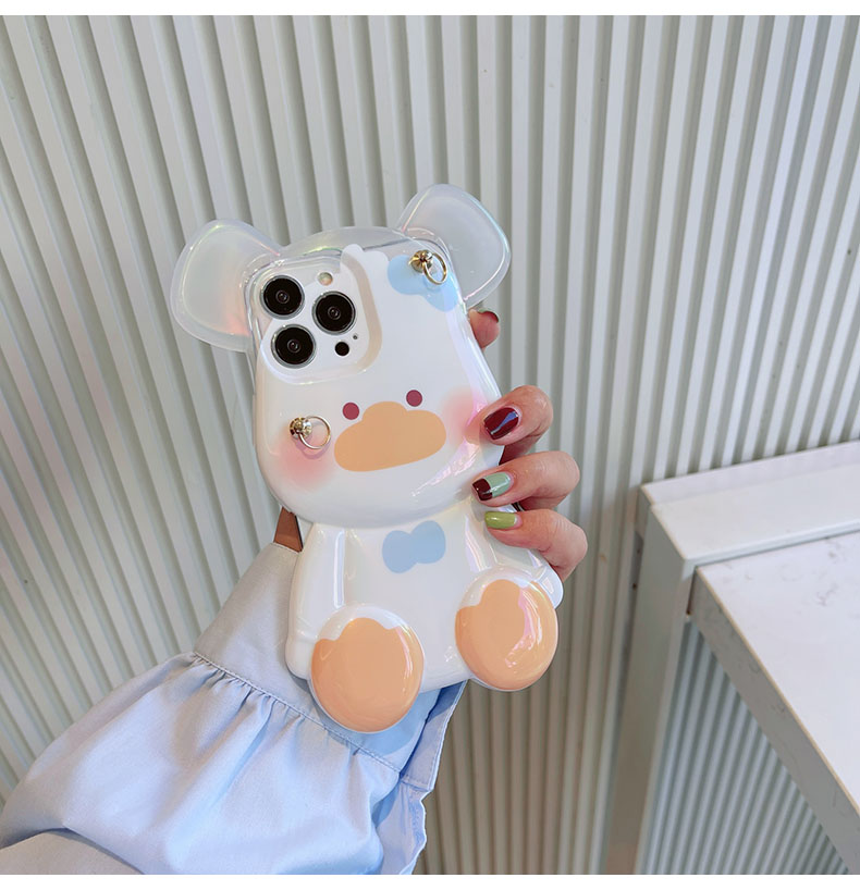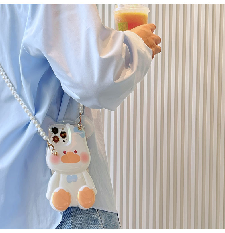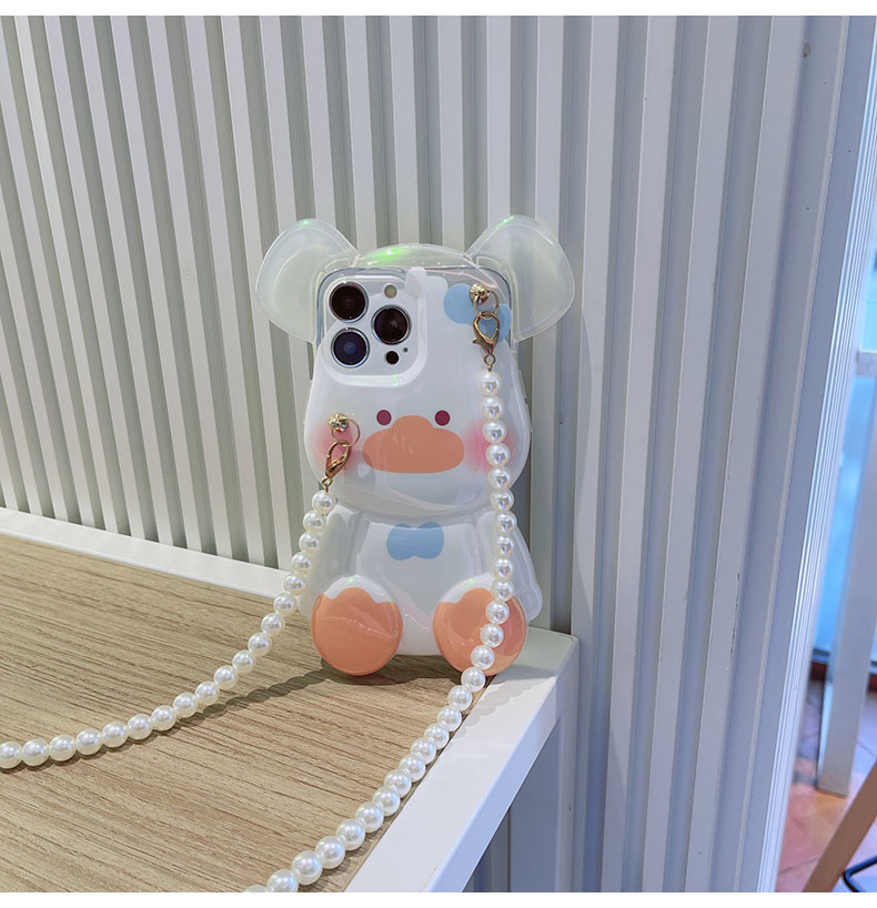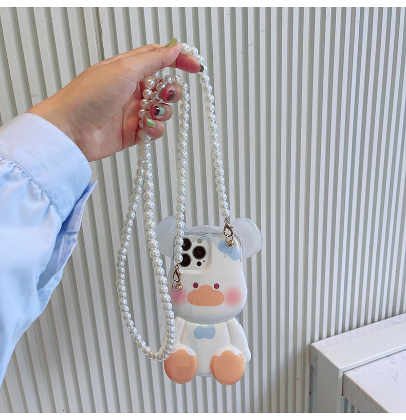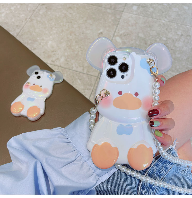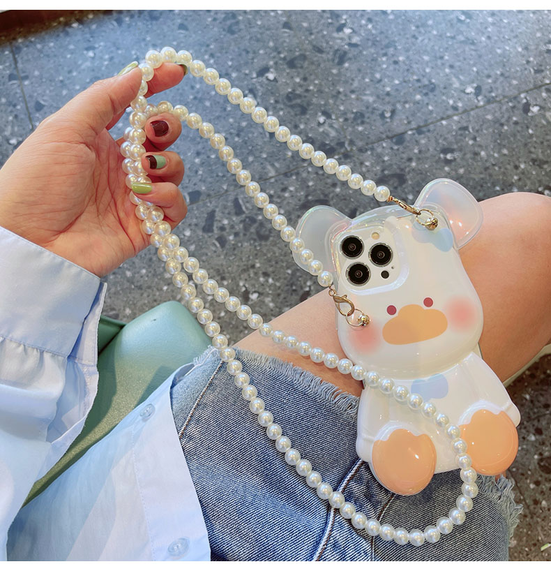 スマホケース H5「真珠層ベア」パールストラップ付き ホワイト
