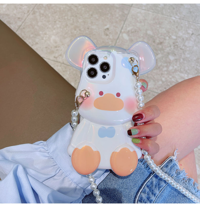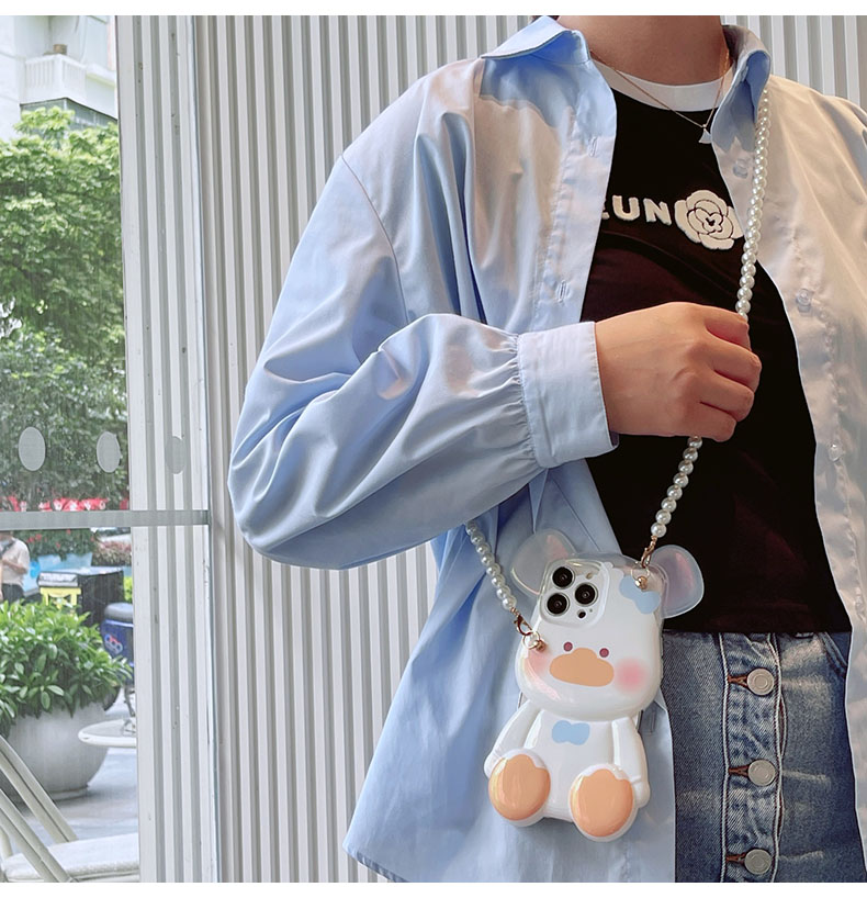 スマホケース H5「ホワイトダック」パールストラップ付き ホワイト