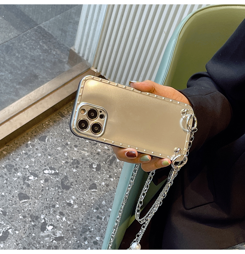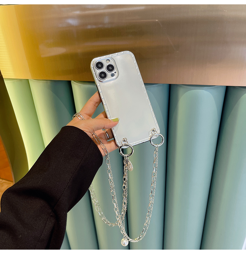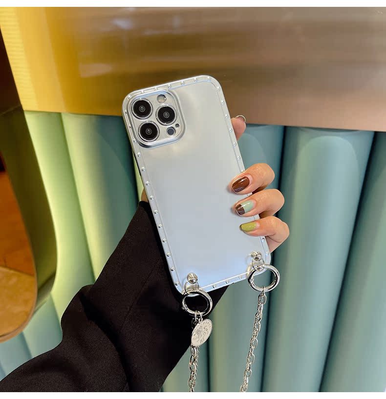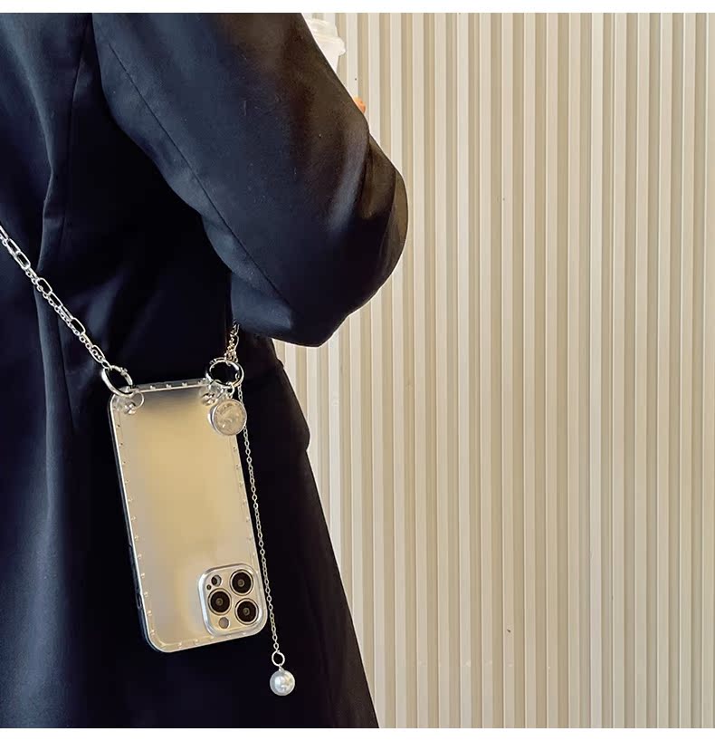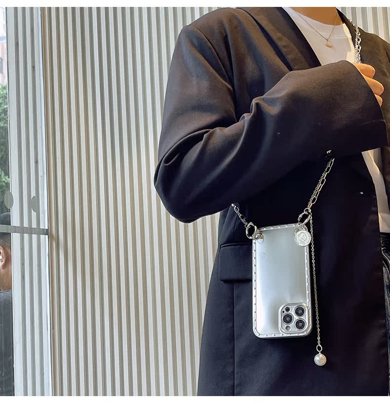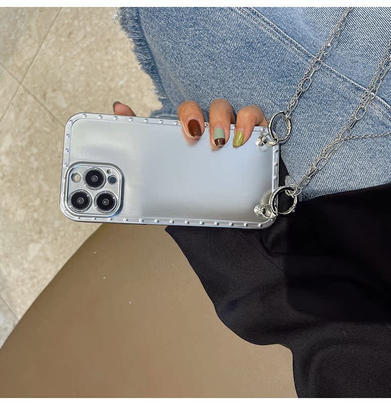 スマホケース H5「insメッキ 」クリスタルダブルストラップ付き シルバー