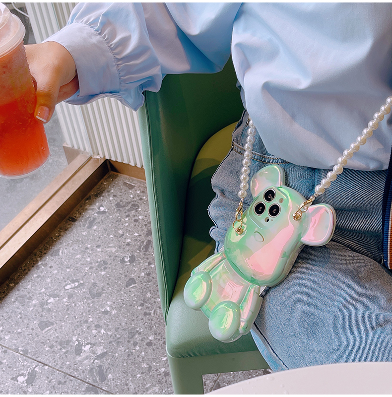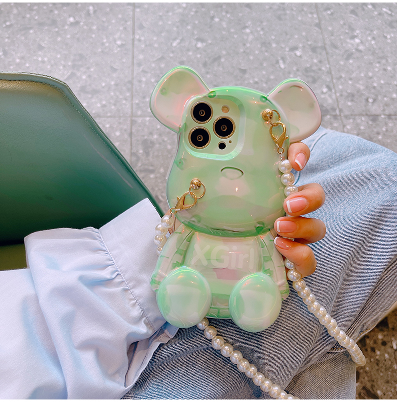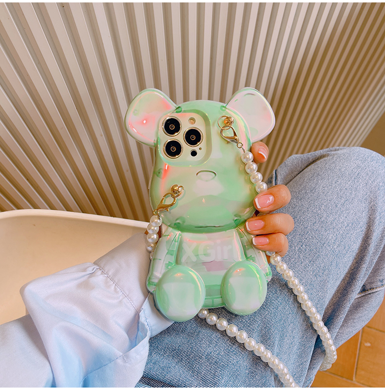 スマホケース H5「シルバーメッキベア」パールストラップ付き