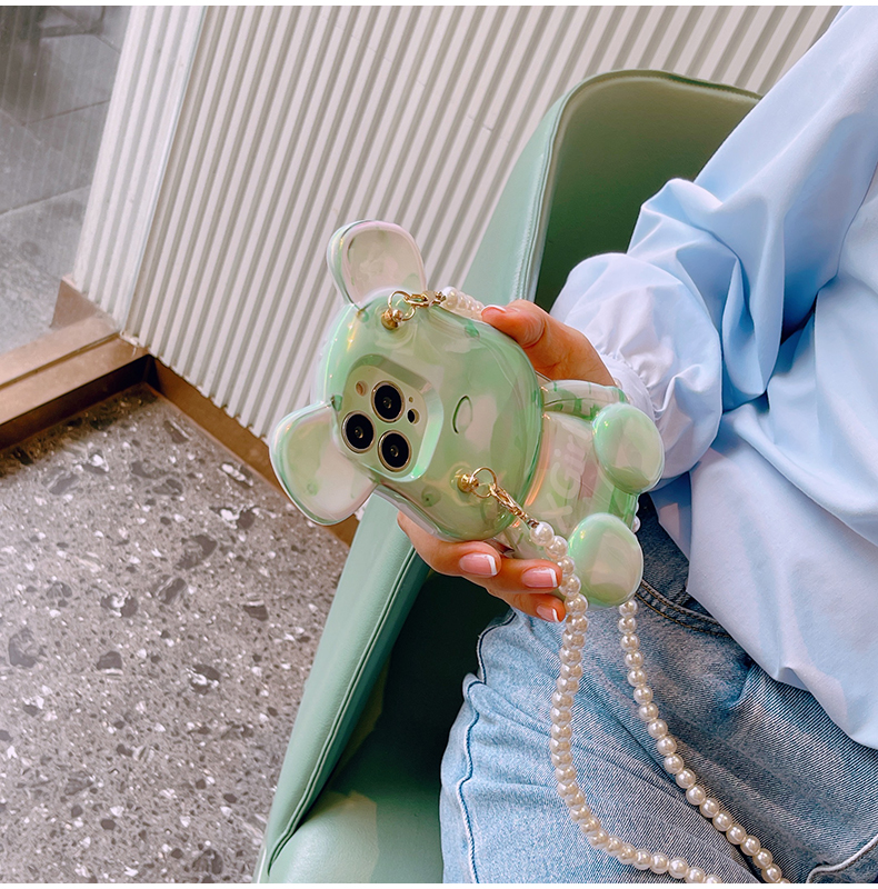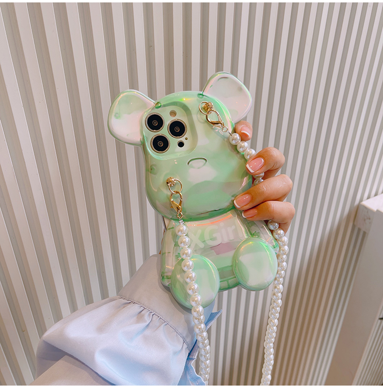 スマホケース H5「ミントミルクベア」パールストラップ付き