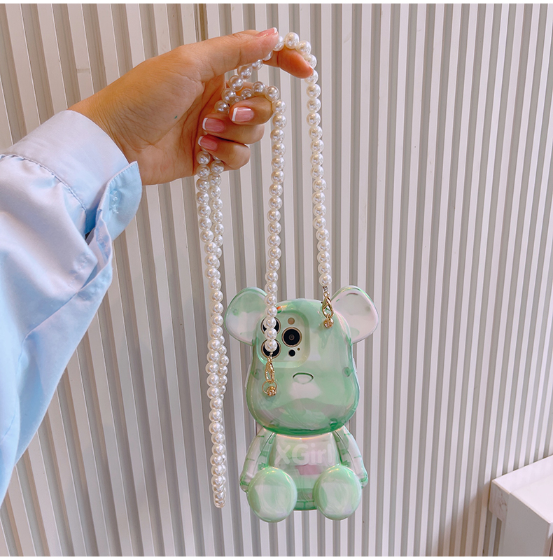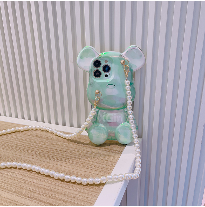 スマホケース H5「真珠層ベア」パールストラップ付き ホワイト