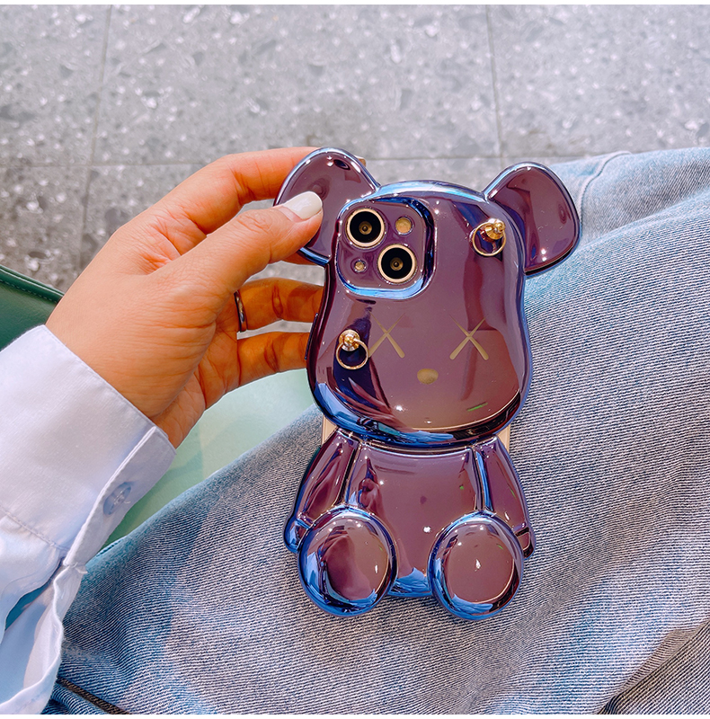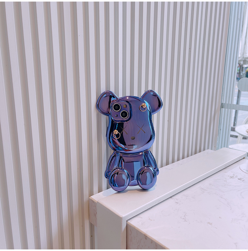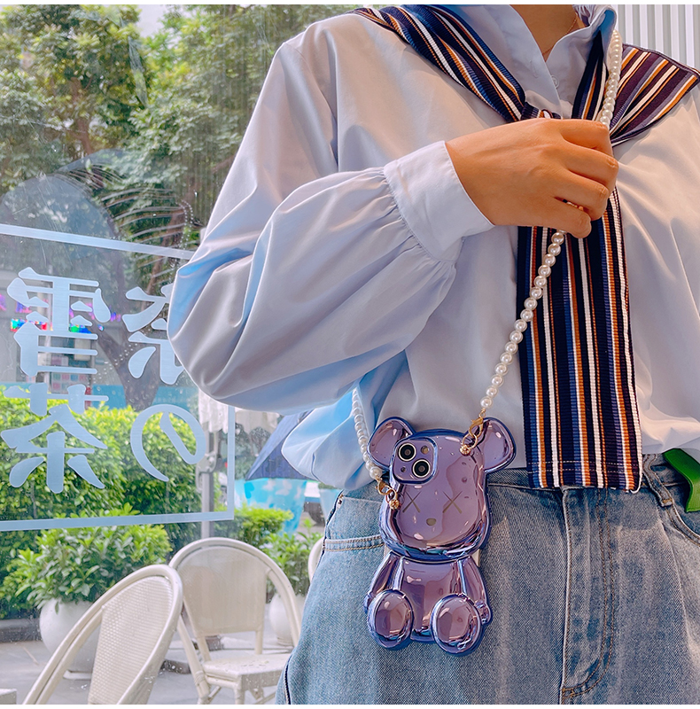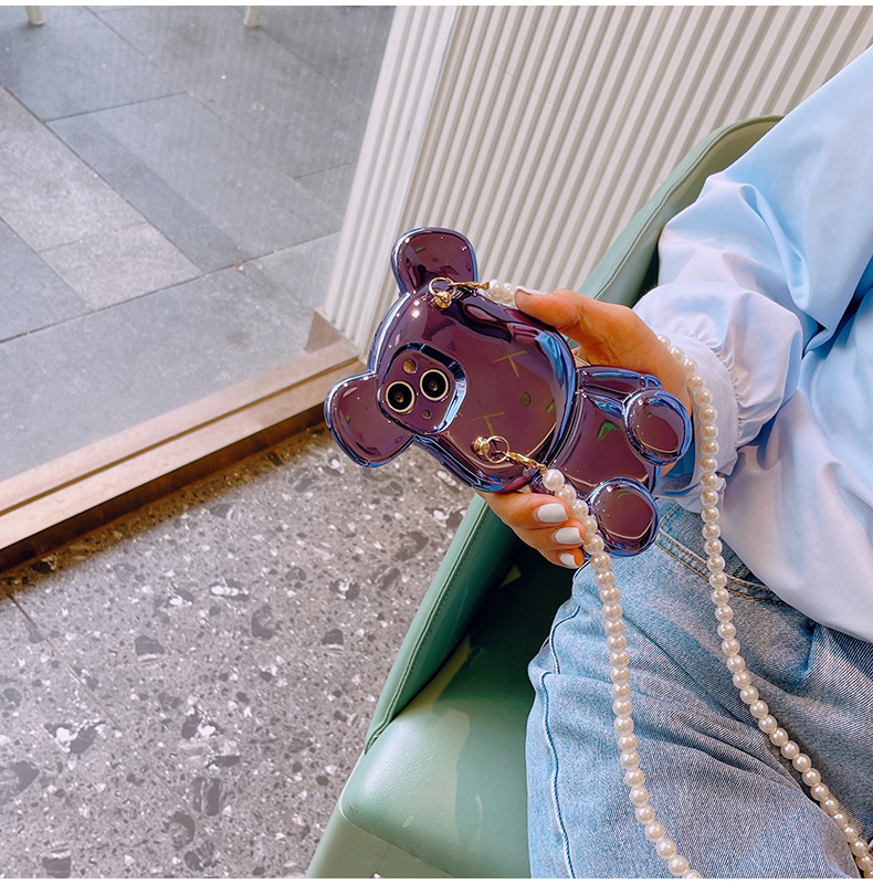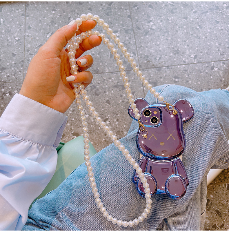 スマホケース H5 「メッキベア」パールストラップ付き パープル/ブルー