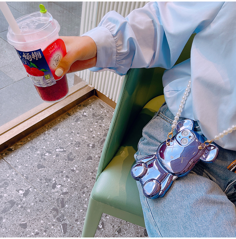 スマホケース H5「シルバーメッキベア」パールストラップ付き