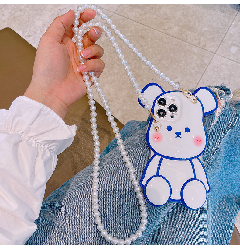 スマホケース H5「真珠層ベア」パールストラップ付き ホワイト