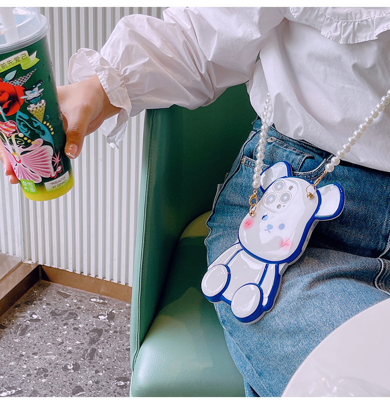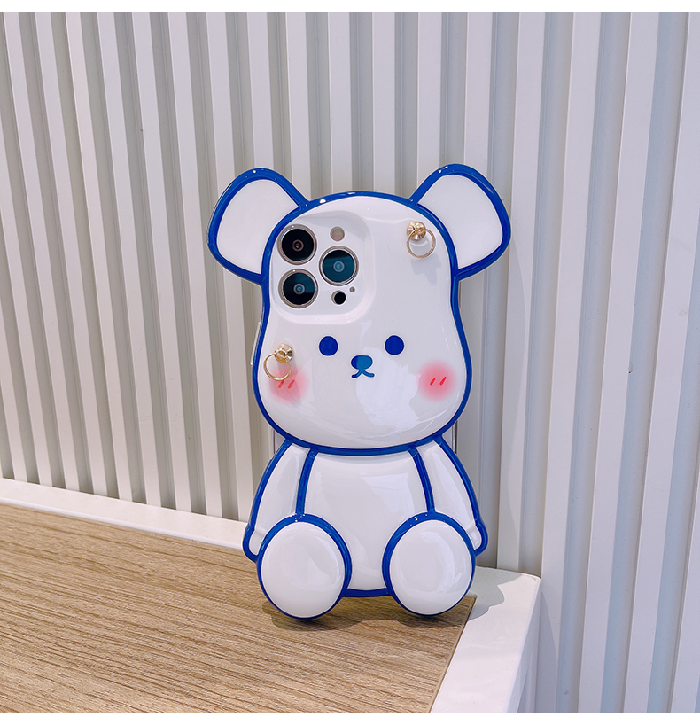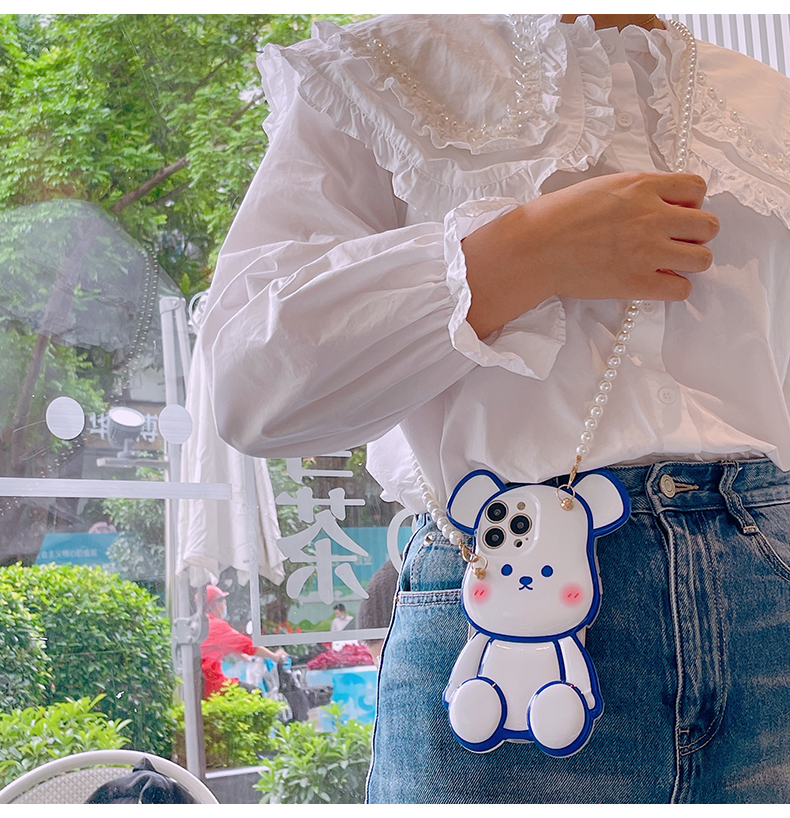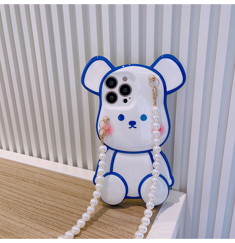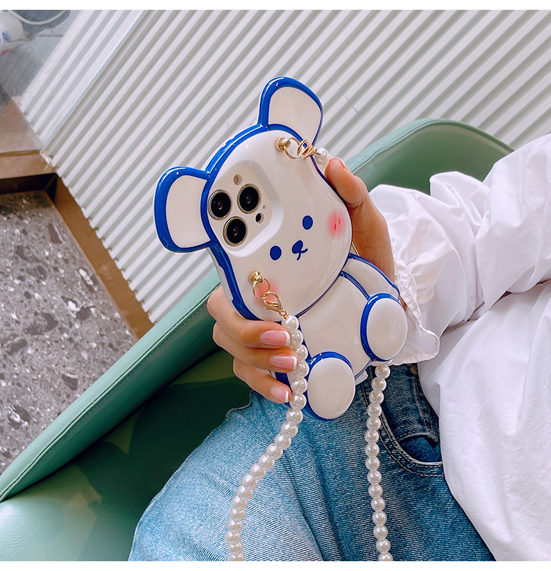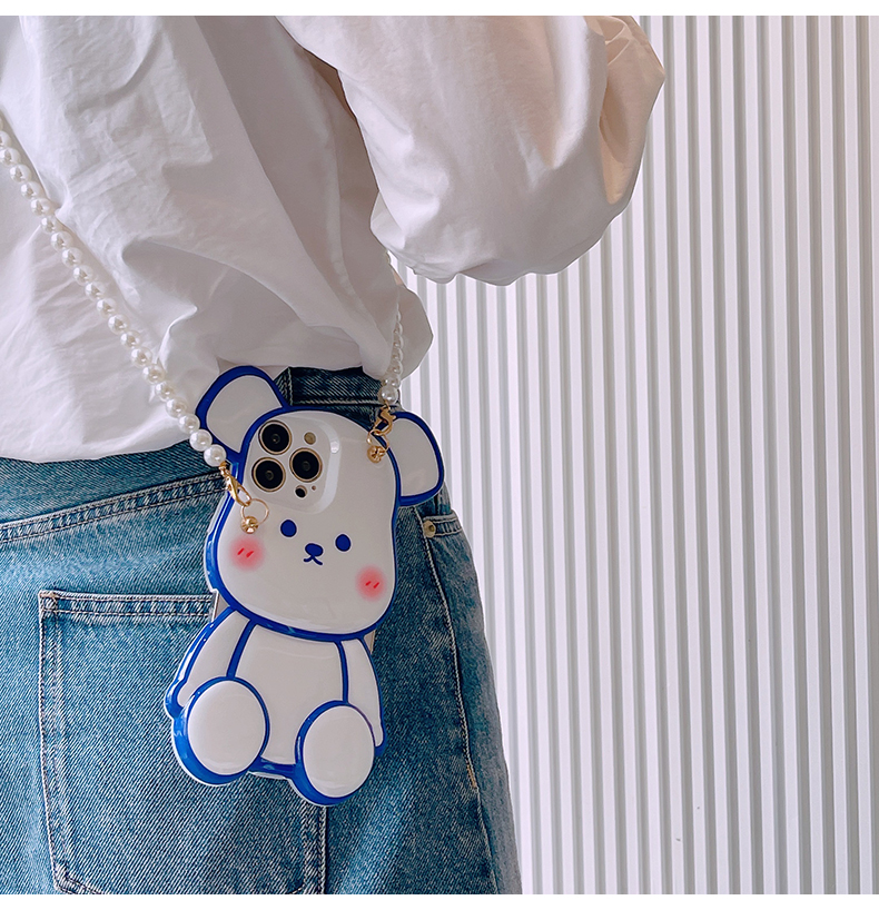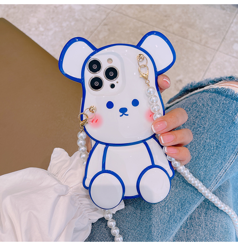 スマホケース H5「光沢ベア」パールストラップ付き ホワイトとブルー
