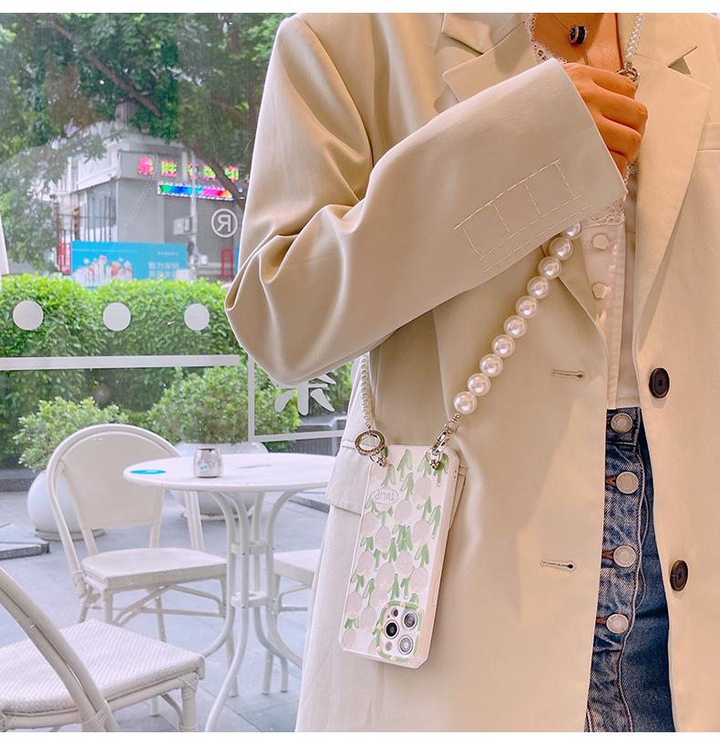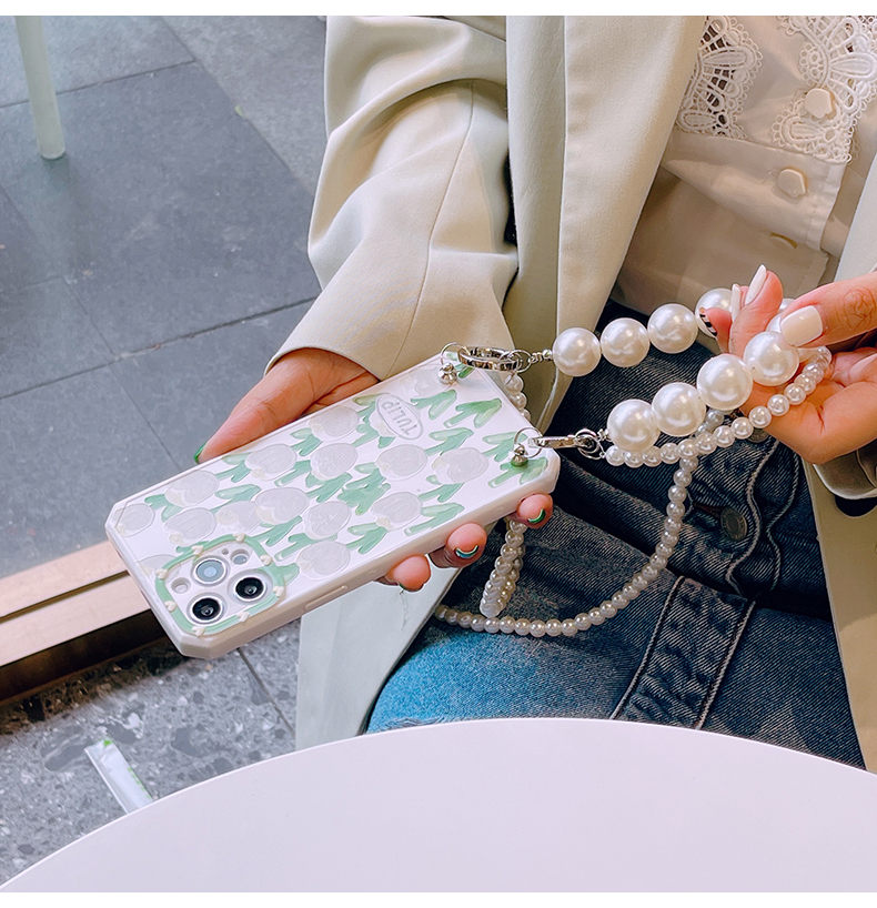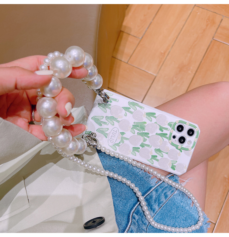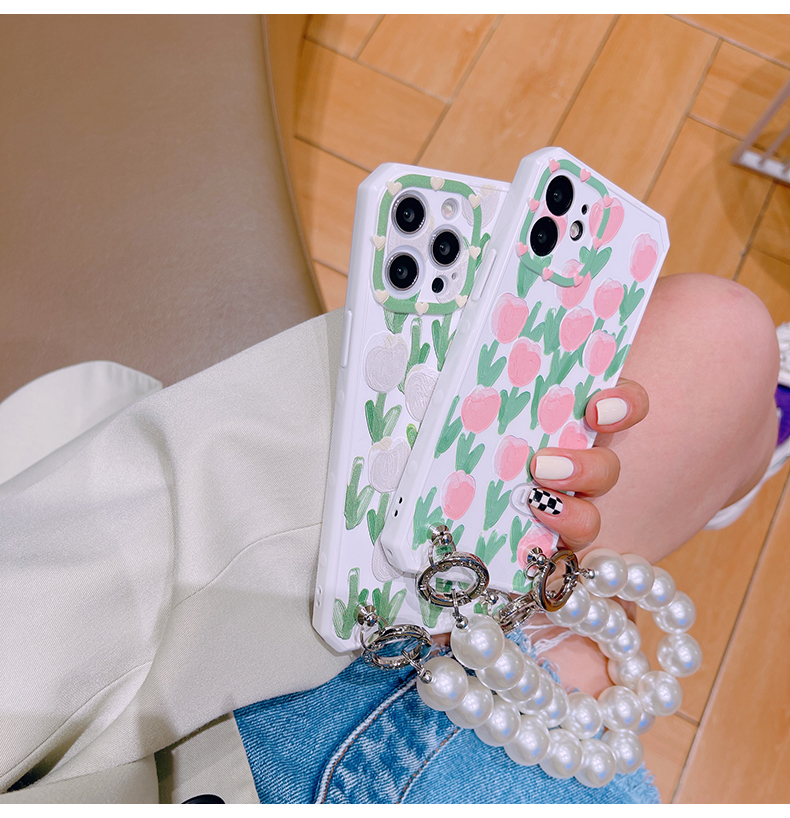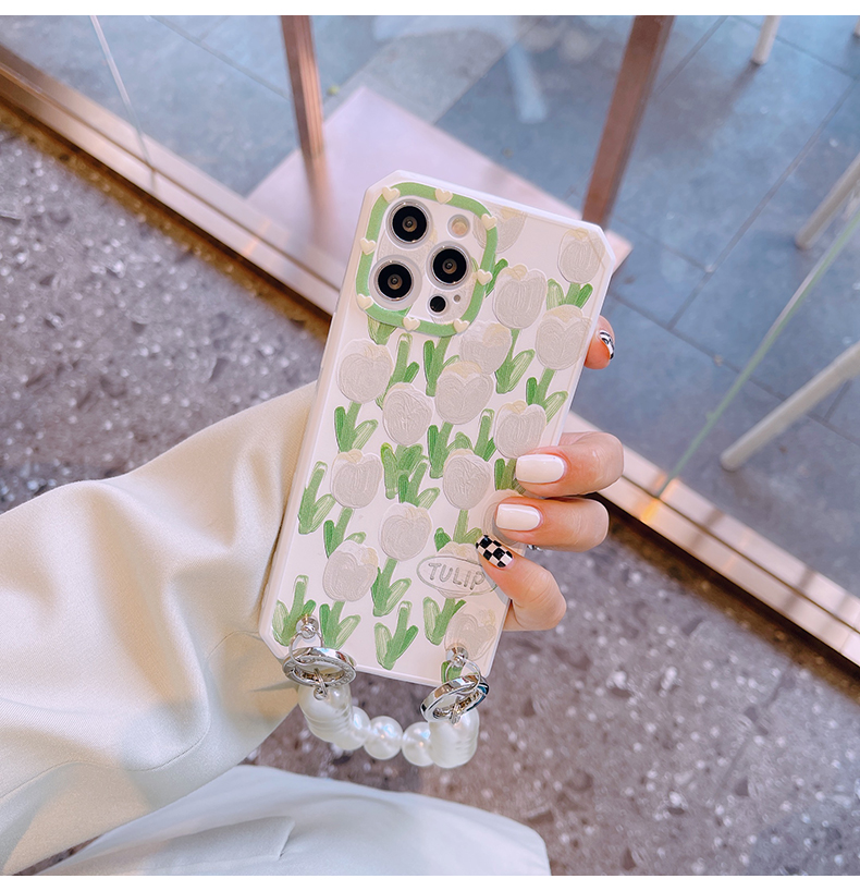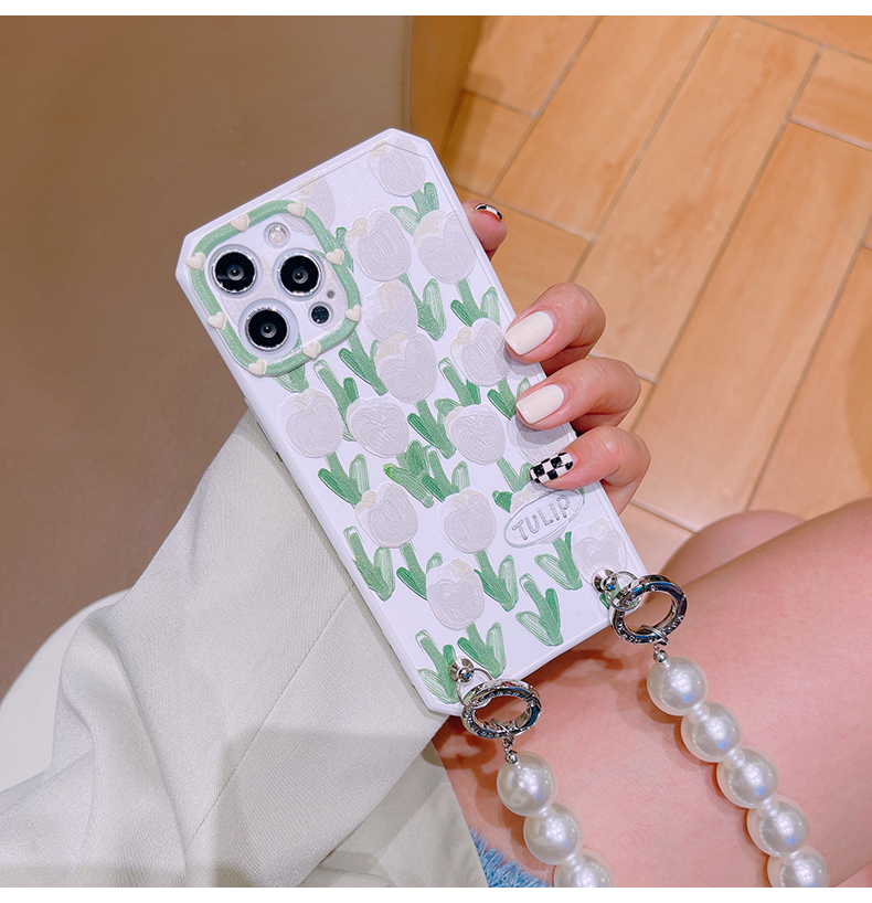 スマホケース H5 「油彩・チューリップ 」パールダブルストラップ付き