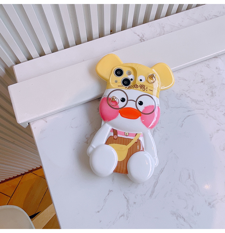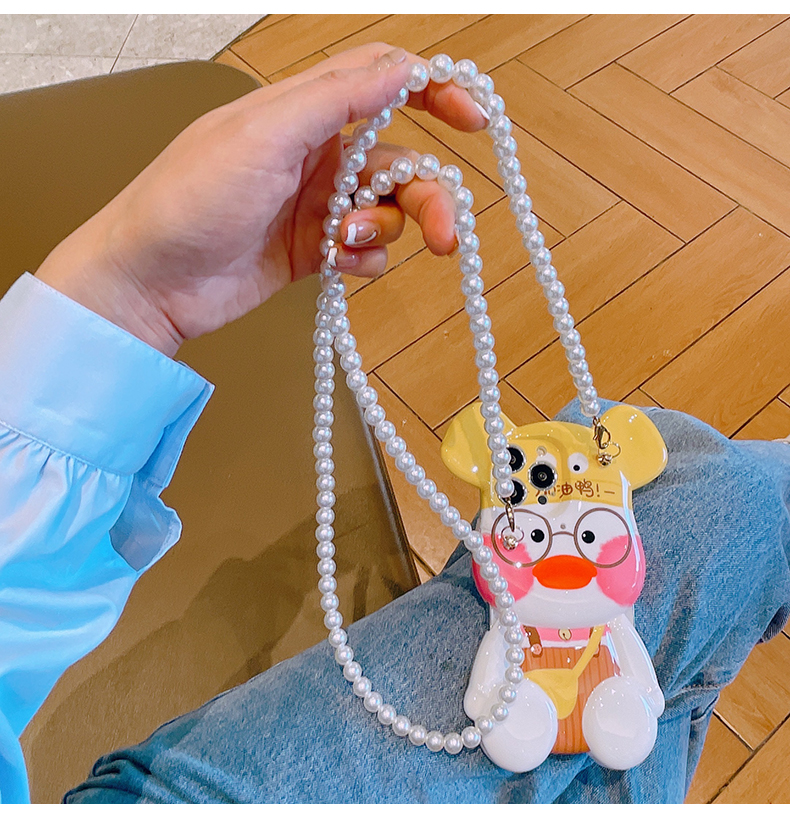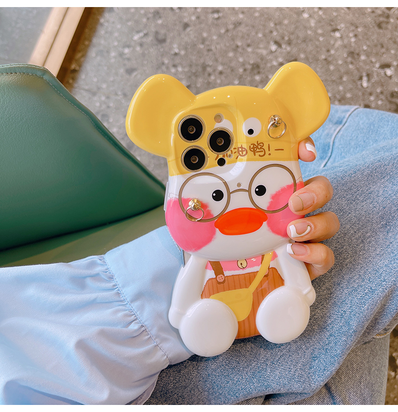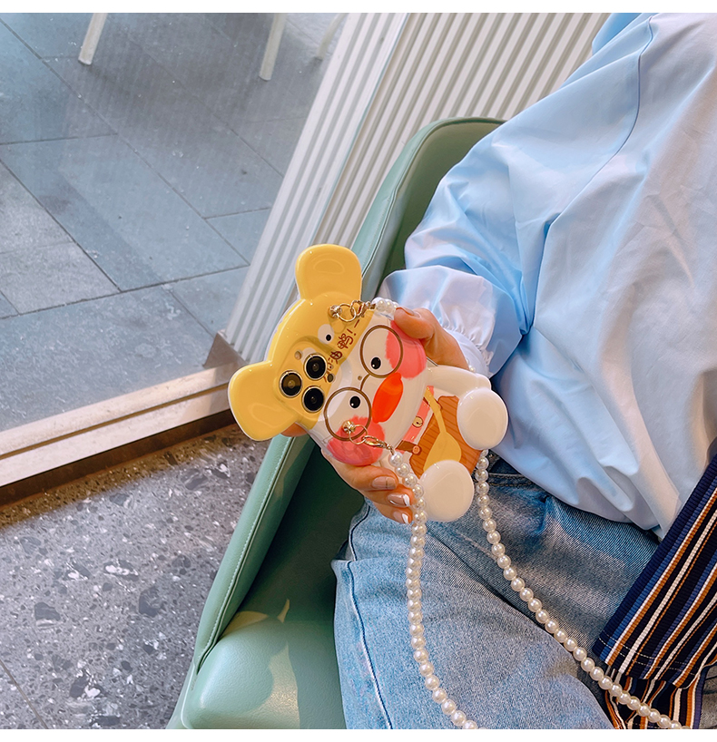 スマホケース H5「頑張ってダックベア」パールストラップ付き イエロー