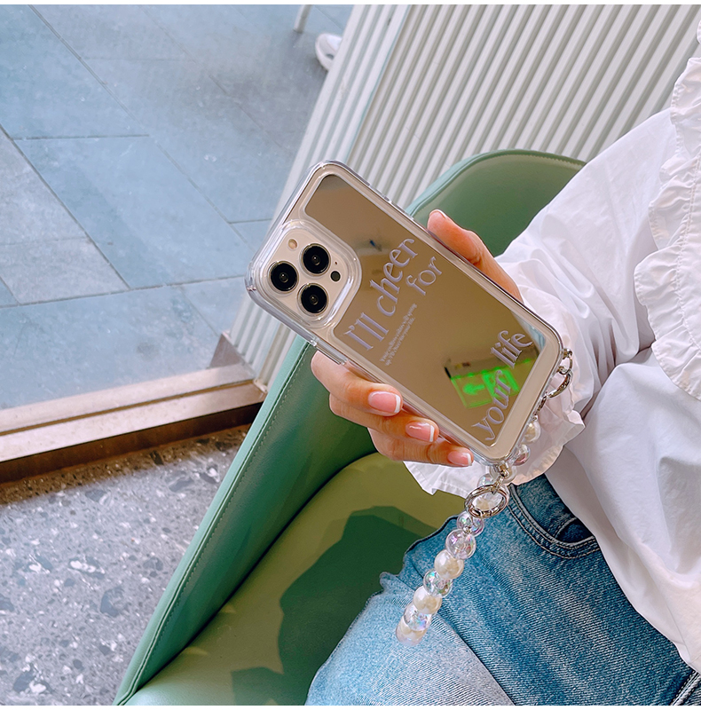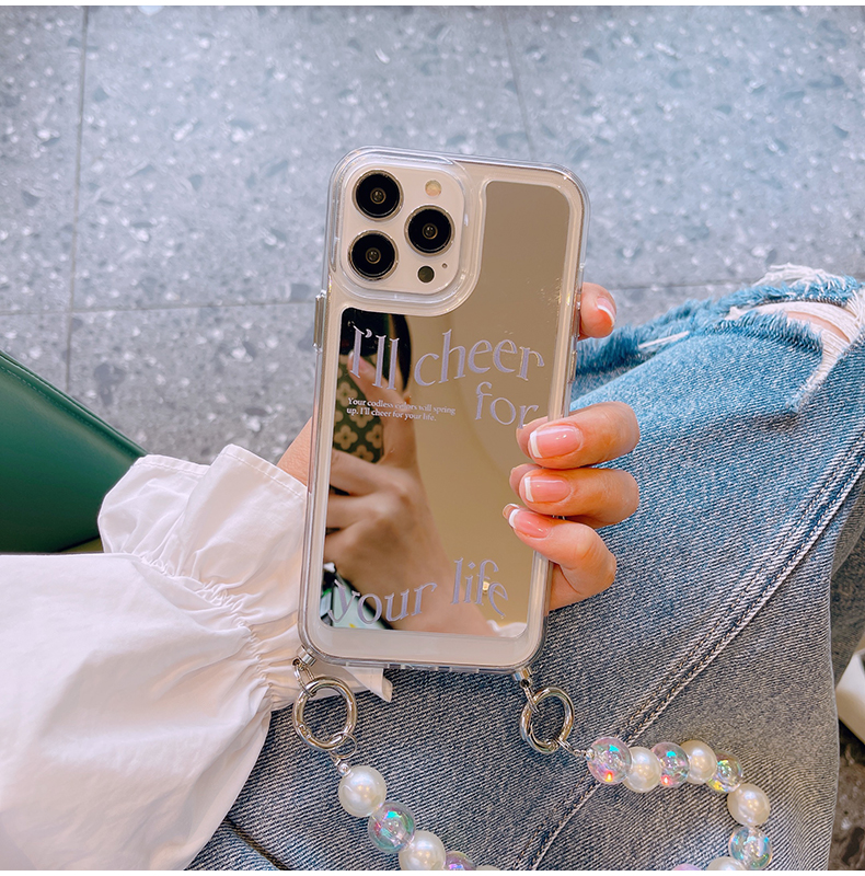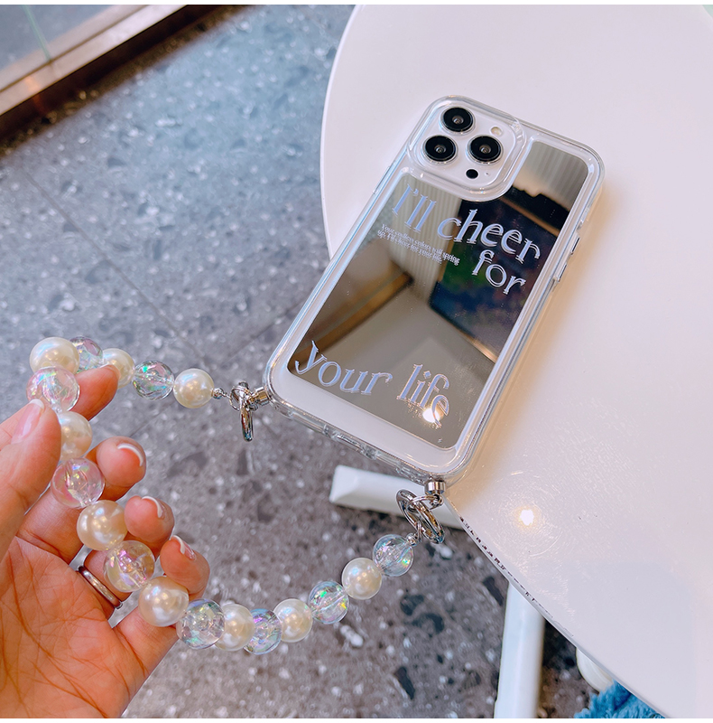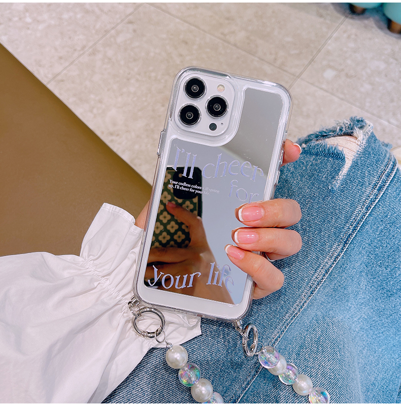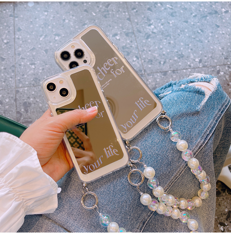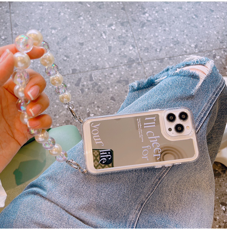 スマホケース H5「CHEERミラー」クリアパールリストストラップ付き クリア