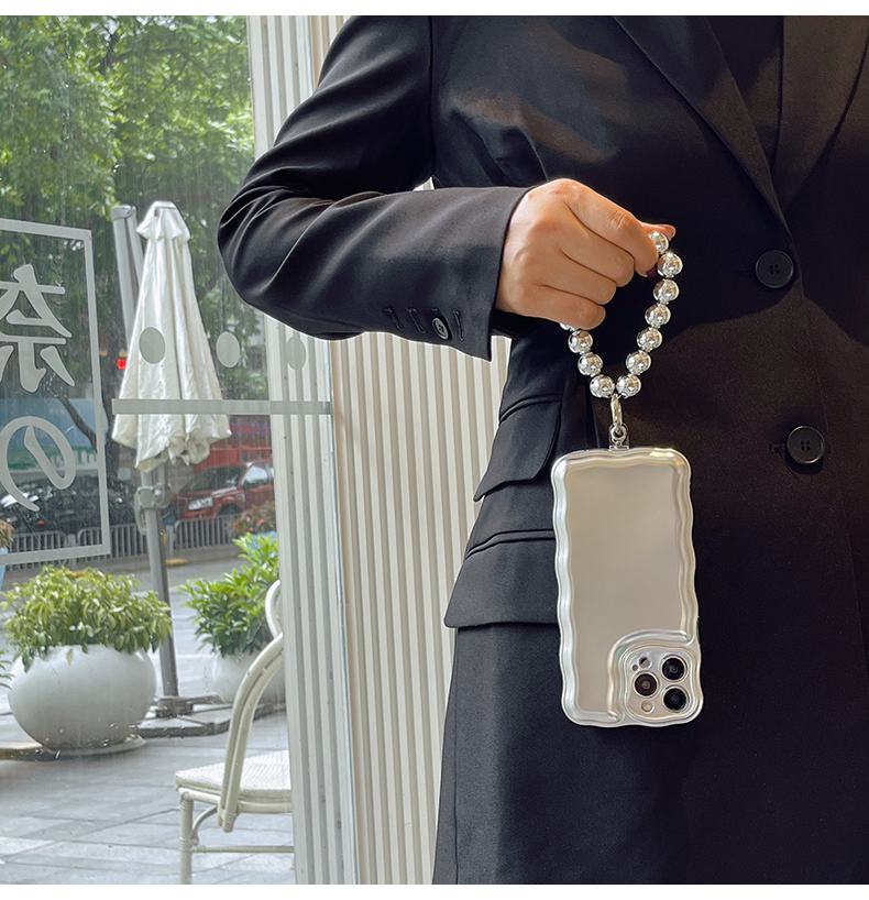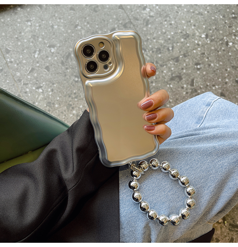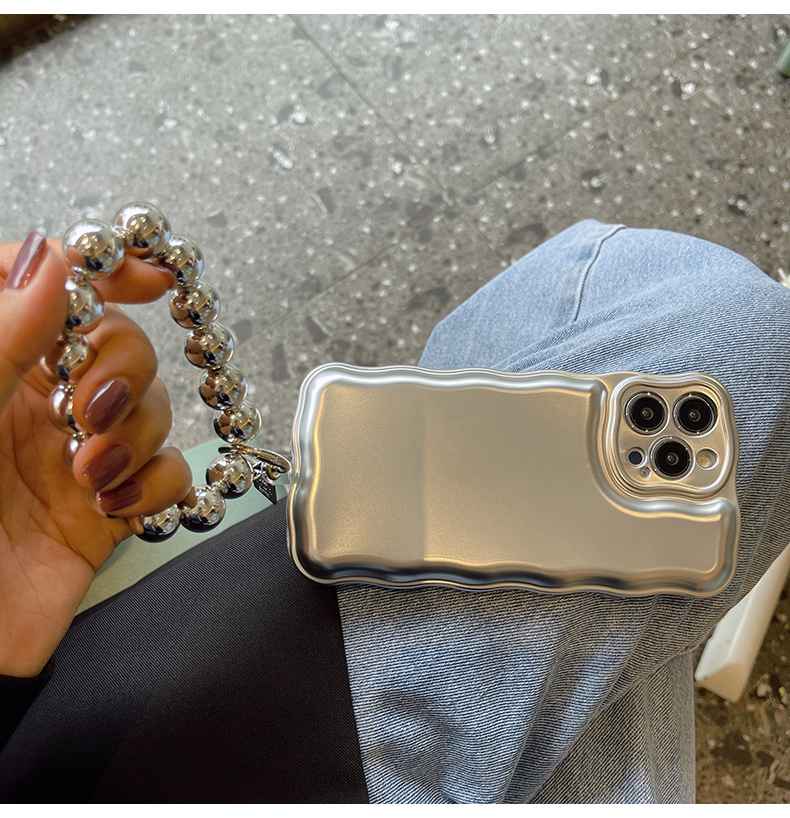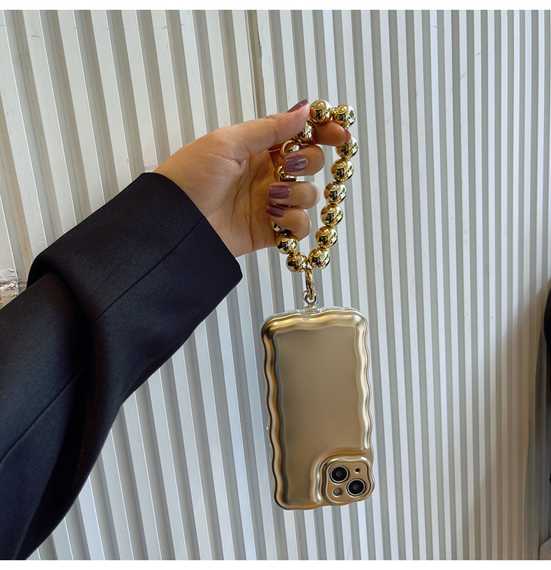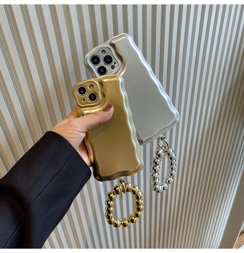 スマホケース H5「WAVE」メッキリストストラップ付き ゴールド/シルバー