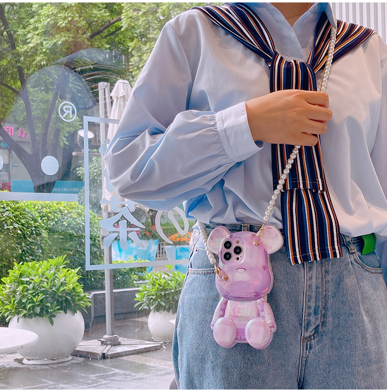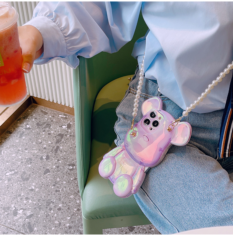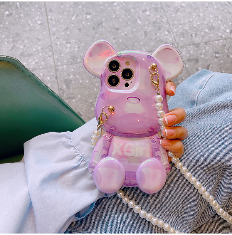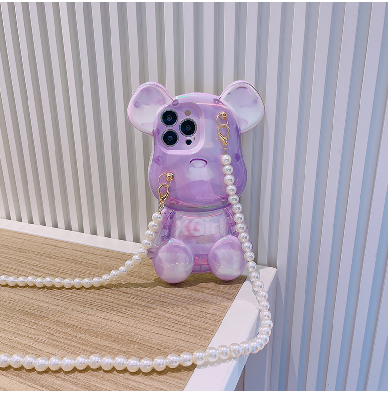 スマホケース H5「シルバーメッキベア」パールストラップ付き