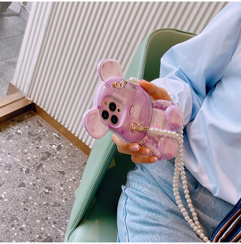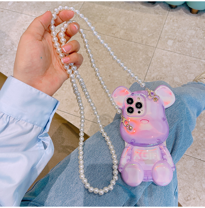 スマホケース H5「真珠層ベア」パールストラップ付き ホワイト