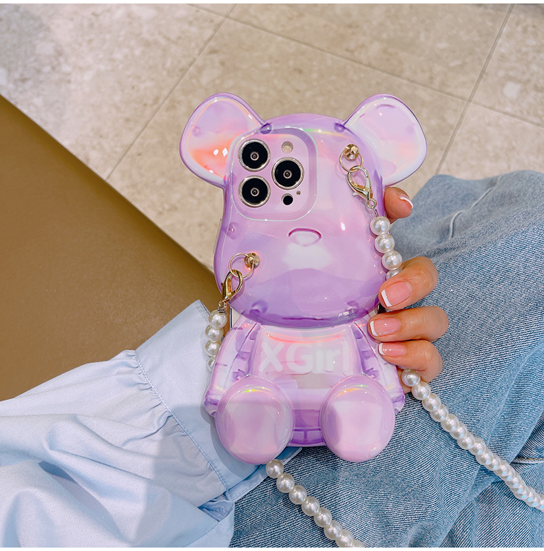 スマホケース H5「ブドウミルクベア」パールストラップ付き