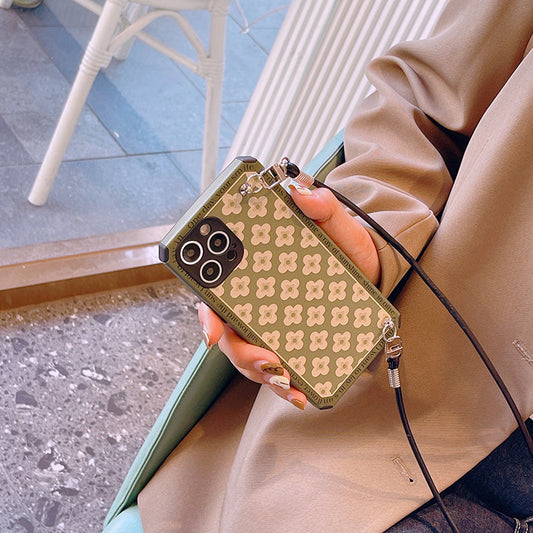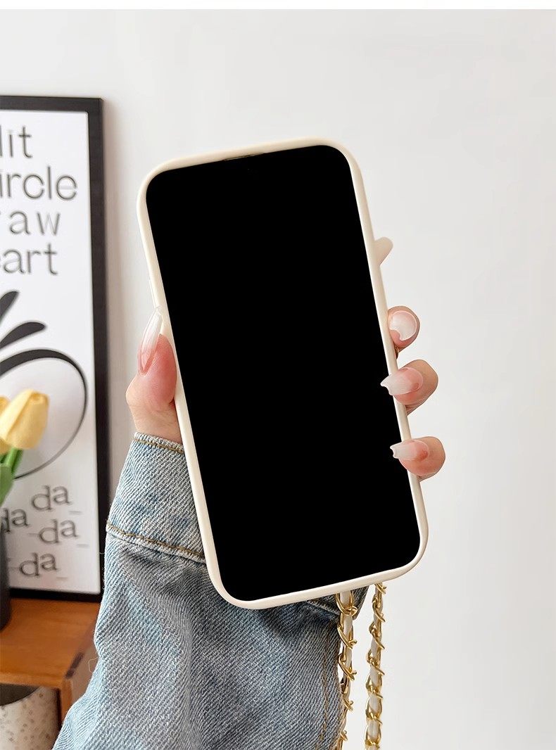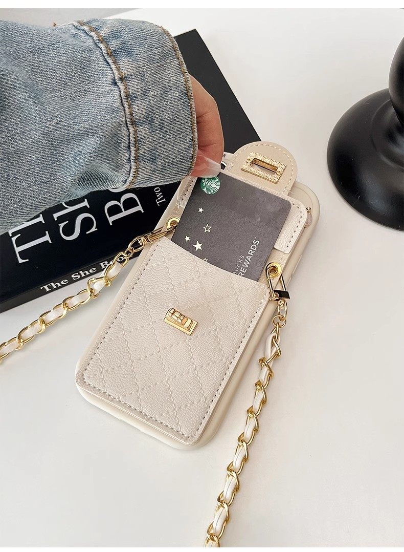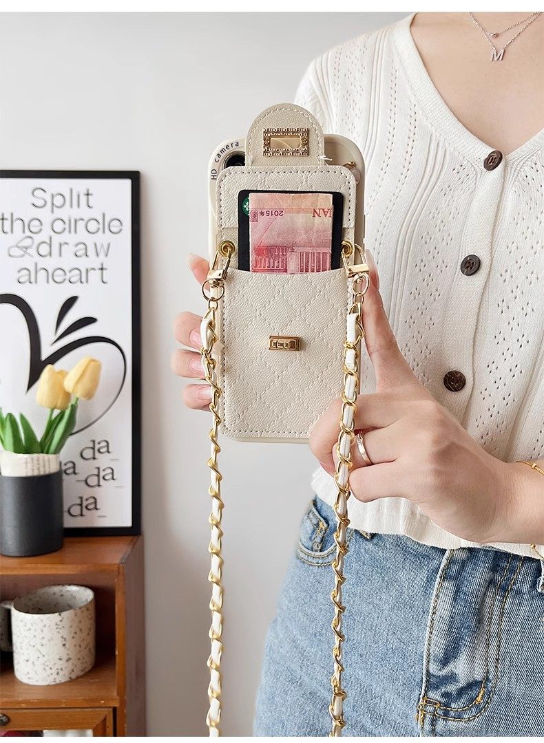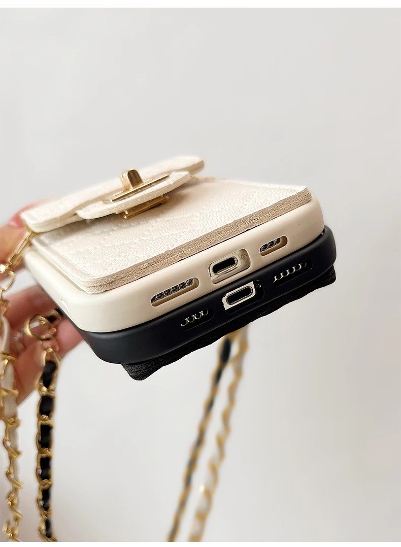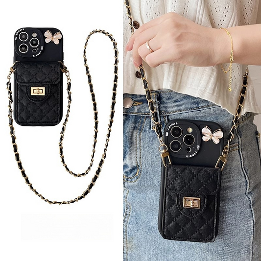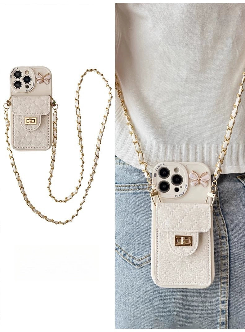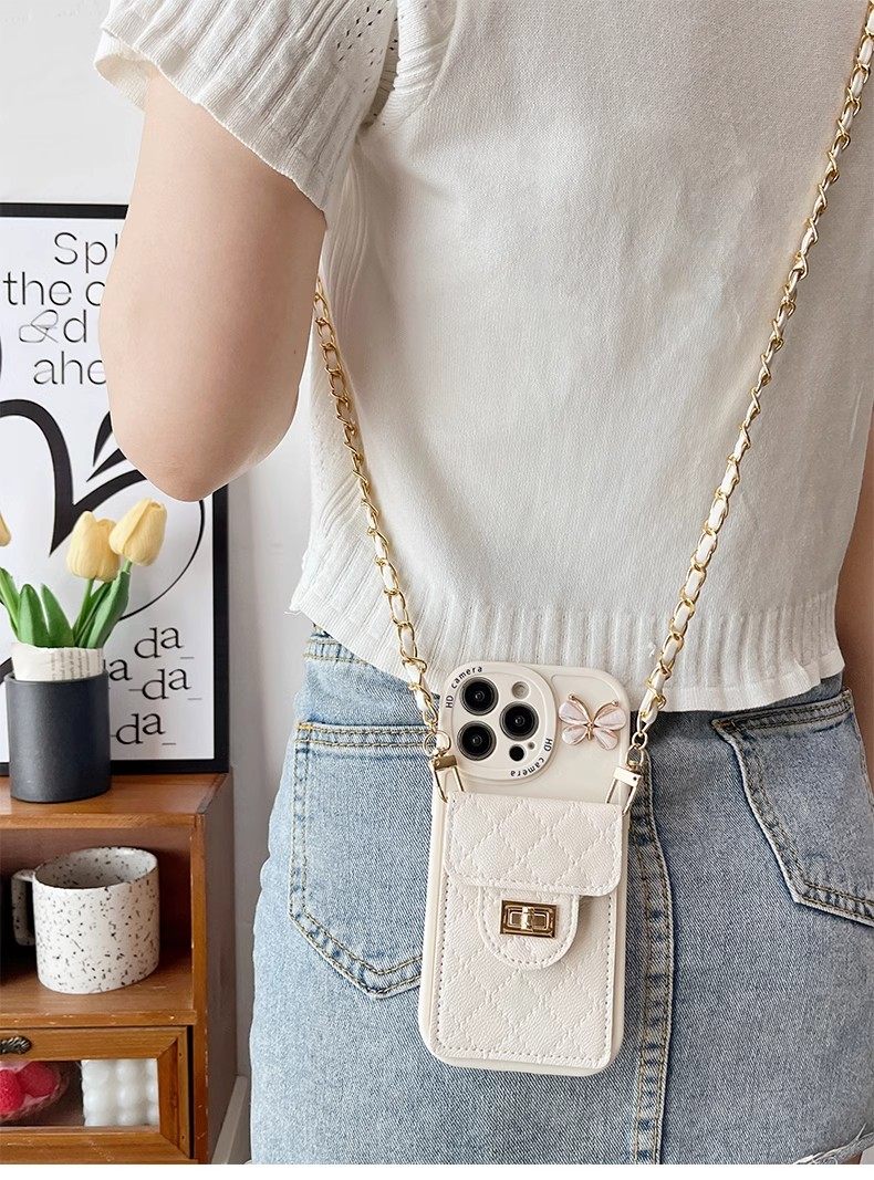 The new French diamond butterfly card bag is suitable for Apple mobile phone case, the new 16pro lambskin 15 crossbody lanyard can be strapped, all-inclusive leather small fragrance 13 all-inclusive anti-drop 12 silicone