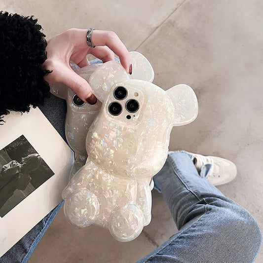 スマホケース H5「真珠層ベア」パールストラップ付き ホワイト